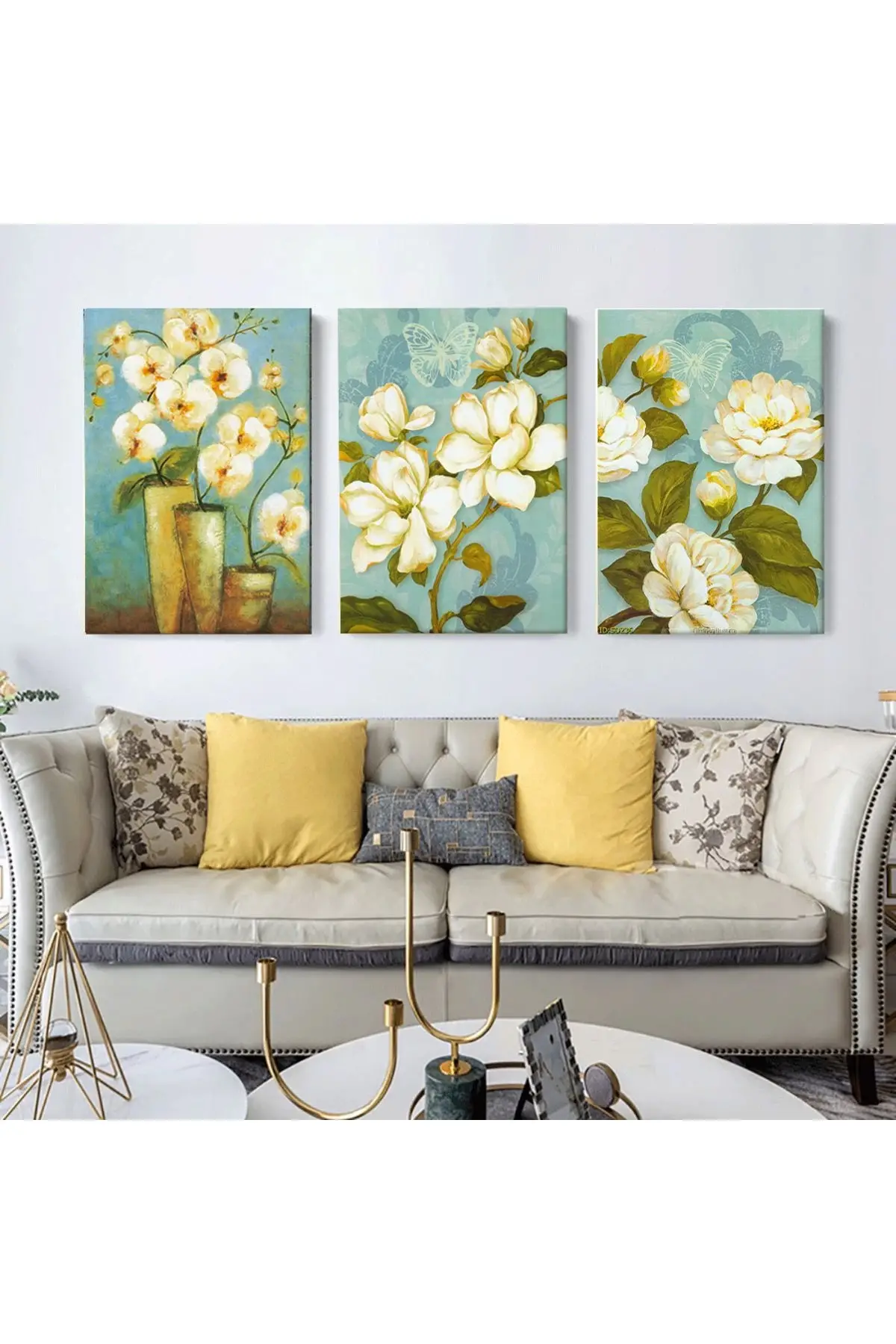 3 Parça Beyaz Manolya Çiçeği Dekoratif Kanvas Tablo Takımı Hakkında