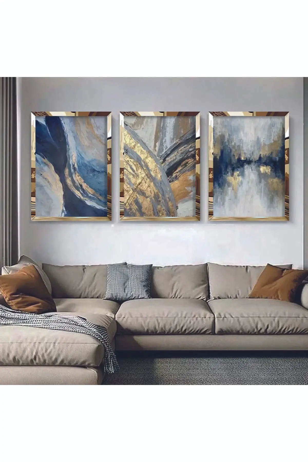 3'lü Gold Pleksi Soyut Dekoratif Tablo Seti Hakkında