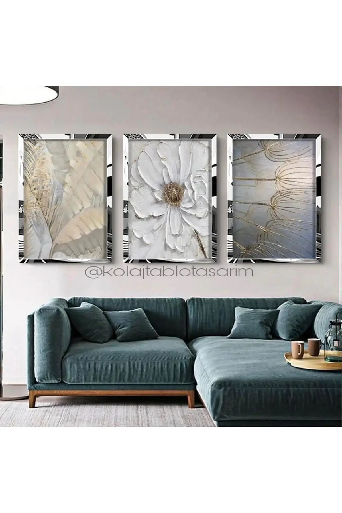 3'lü Gümüş Pleksi Dekoratif Çiçekler Çerçeveli Tablo Seti Hakkında