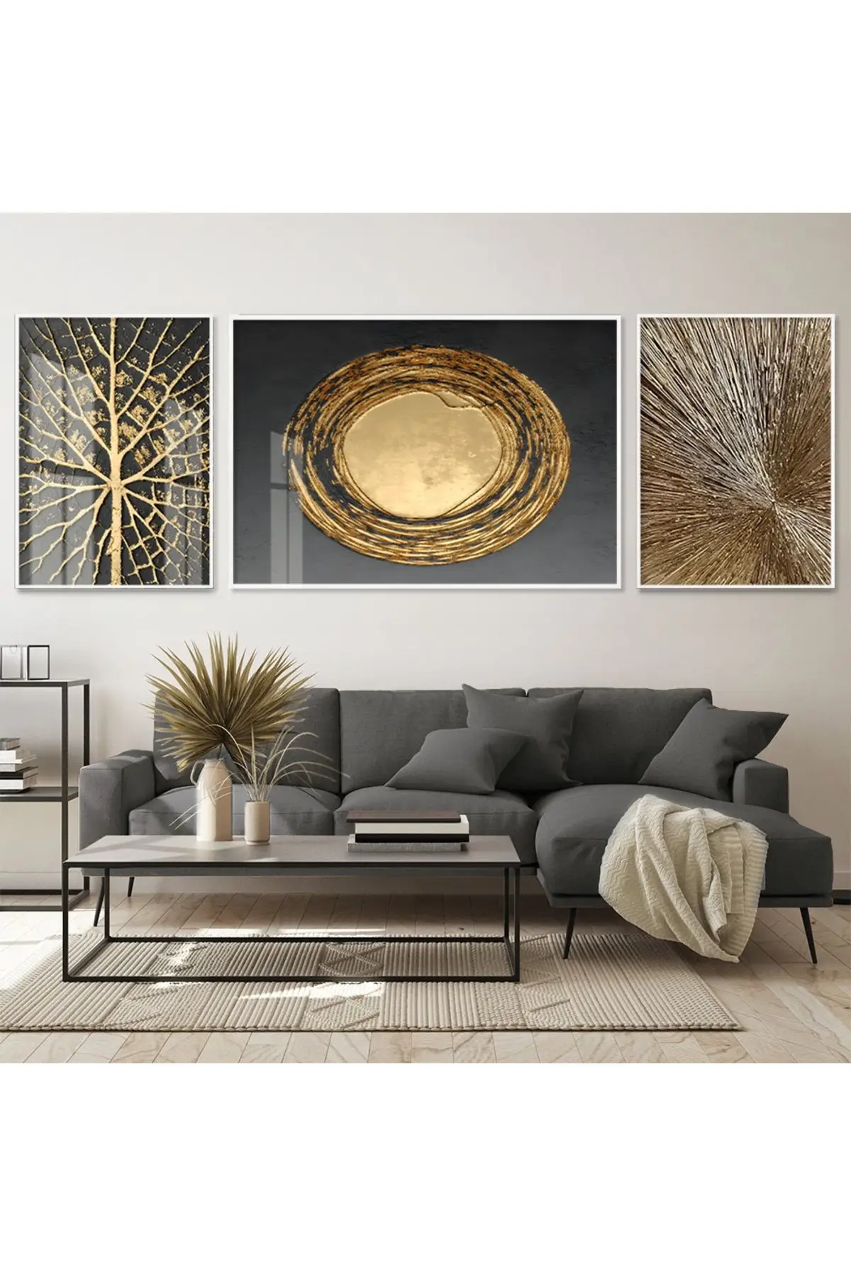 Altın Ağacın Işıltısı Üçlü Metal Çerçeveli Tablo Seti Hakkında