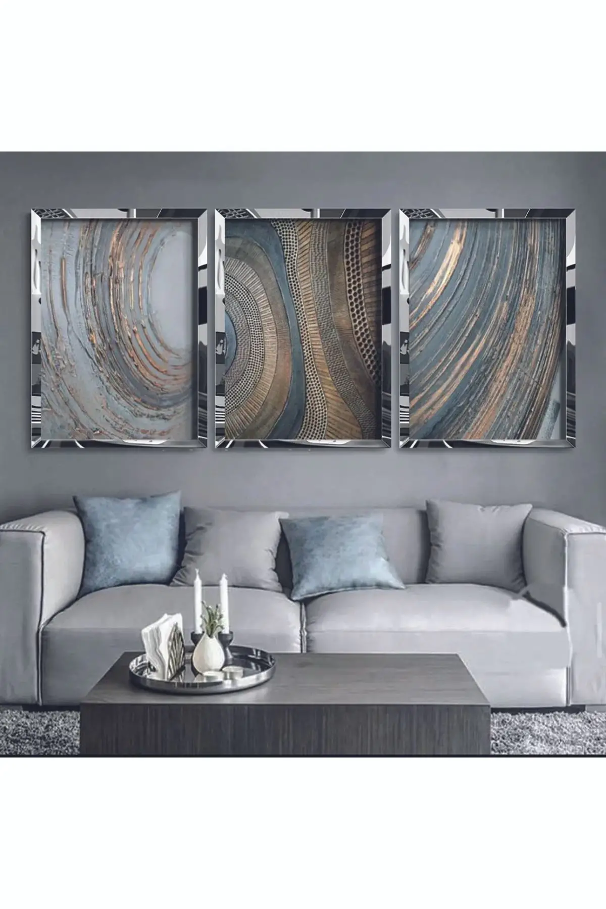 Altın Daireler Gümüş Pleksi 3'lü Kombin Tablo Hakkında