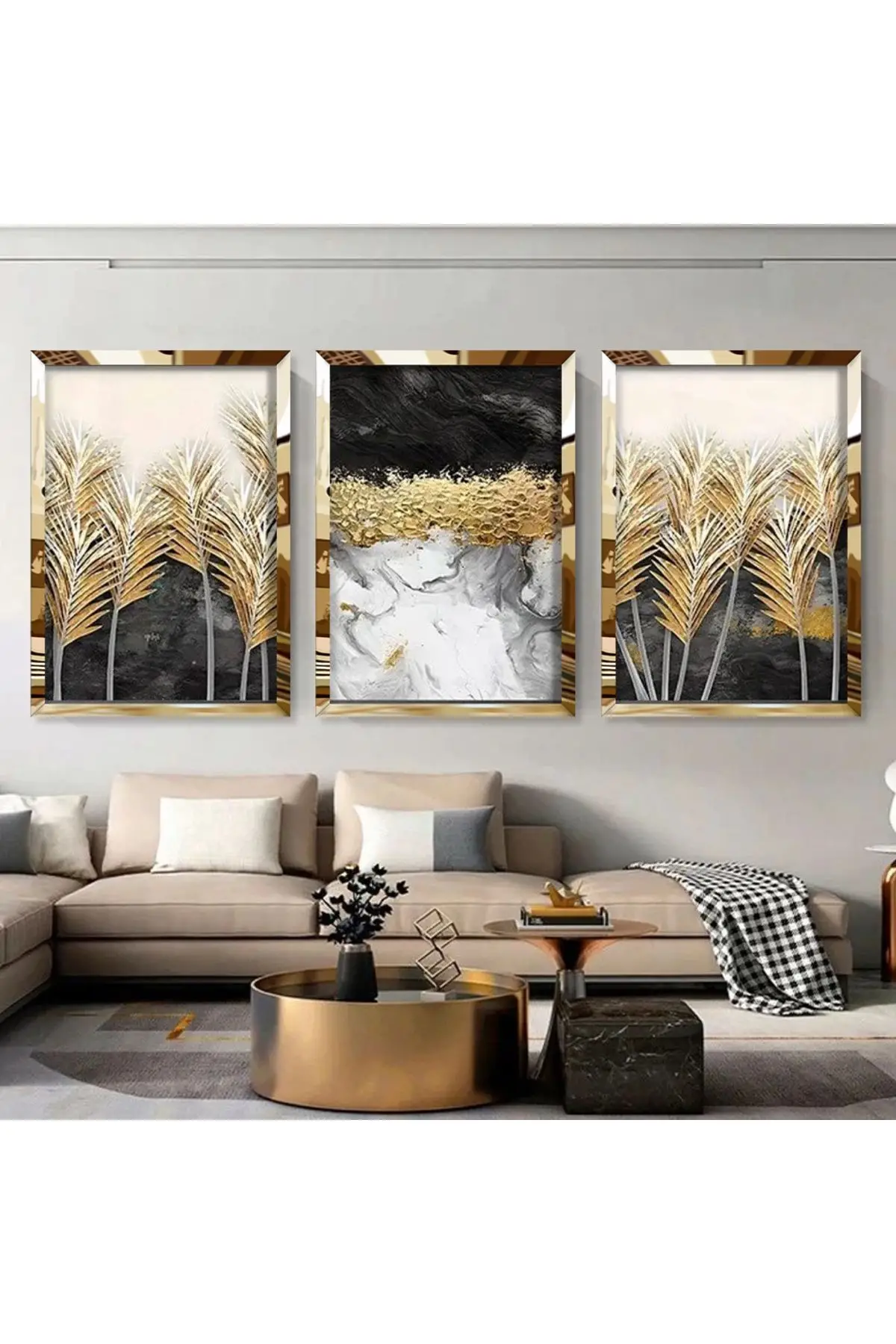 Altın Desen 3'lü Gold Pleksili Çerçeveli Tablo Seti Hakkında