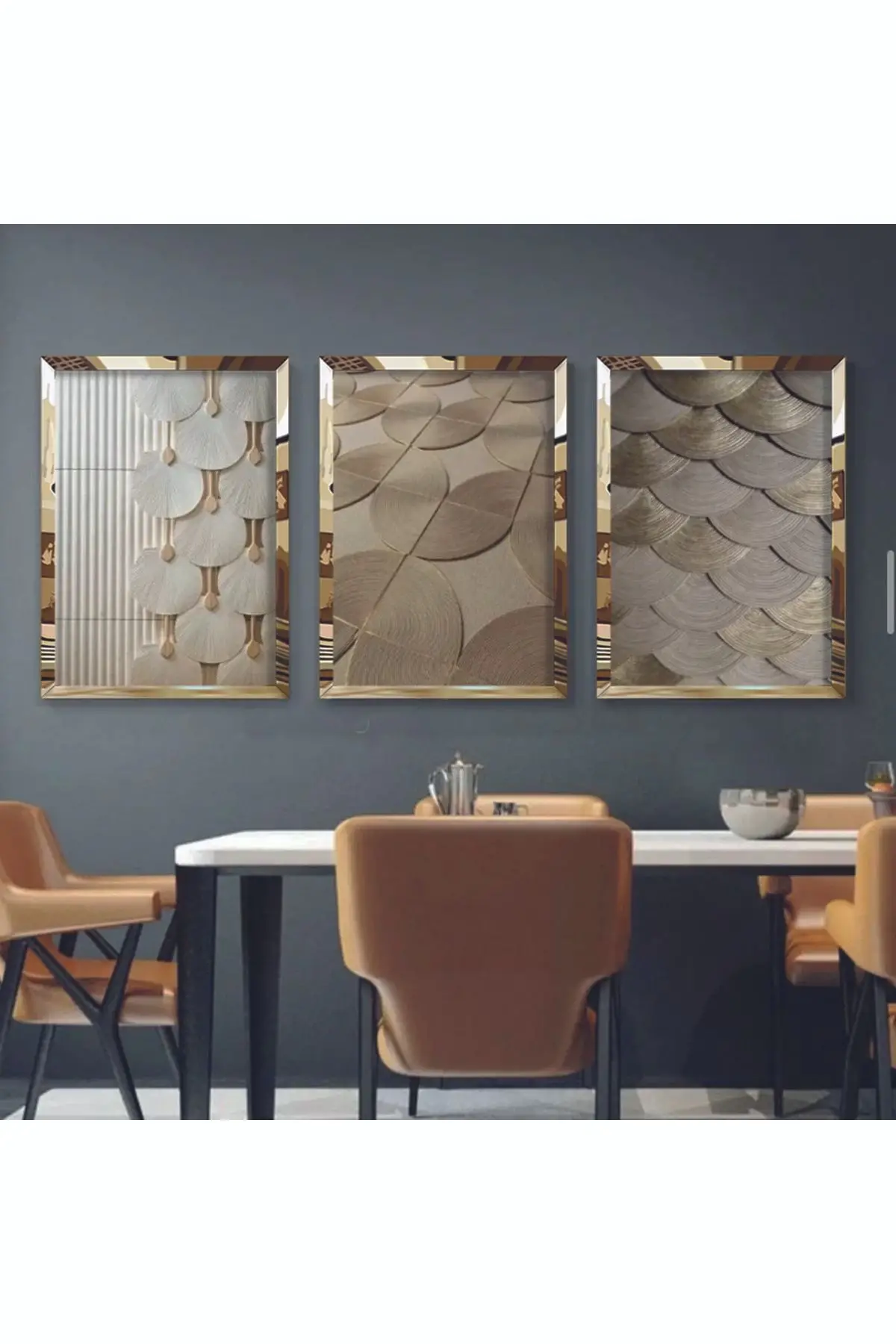 Altın Detaylar: Geometrik Şekiller ve Pullar Üçlü Gold Pleksi Tablo Seti Hakkında