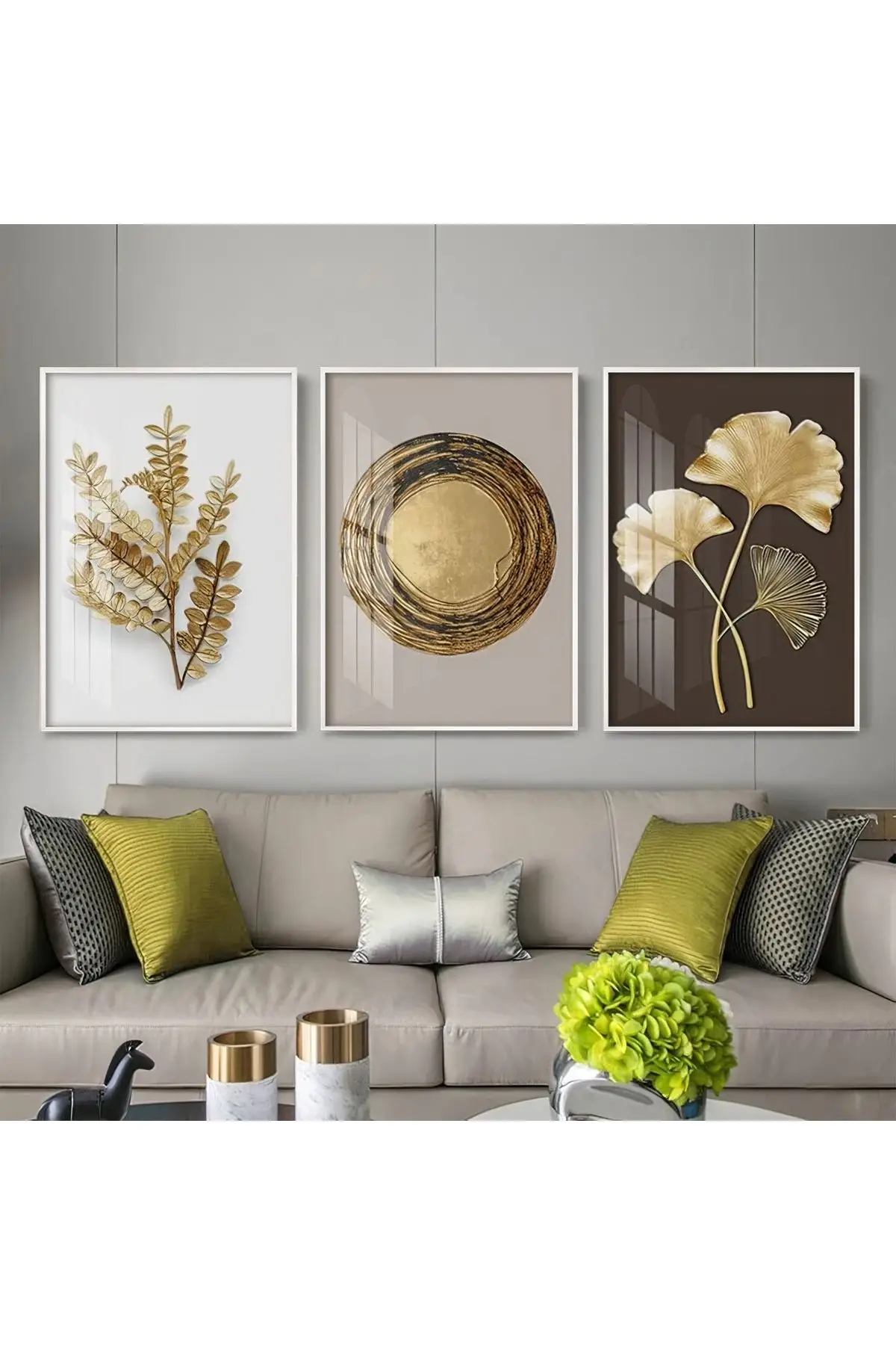 Altın Esinti Modern Sanat Üçlü Metal Çerçeveli Tablo Seti Hakkında