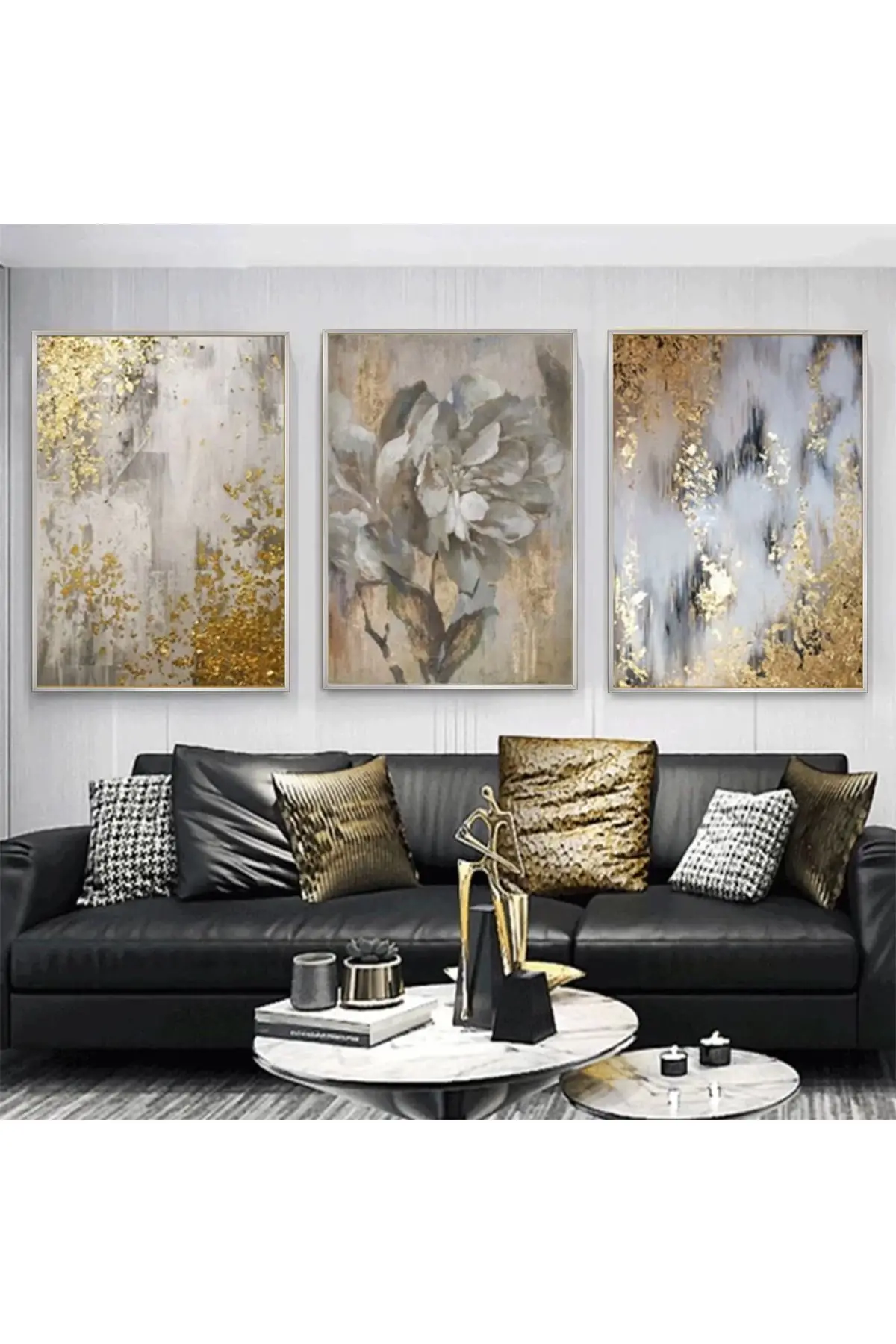 Altın Işıltılı Doğa Dokunuşları Üçlü Metal Çerçeveli Tablo Seti Hakkında