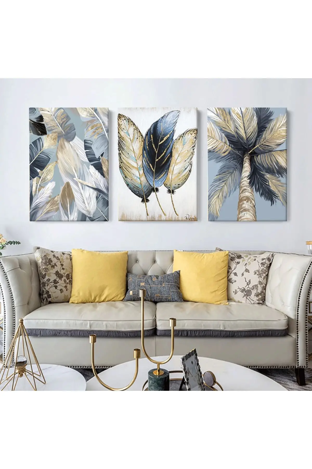 Altın Konsept 3'lü Kombin Dekoratif Kanvas Tablo Seti Hakkında