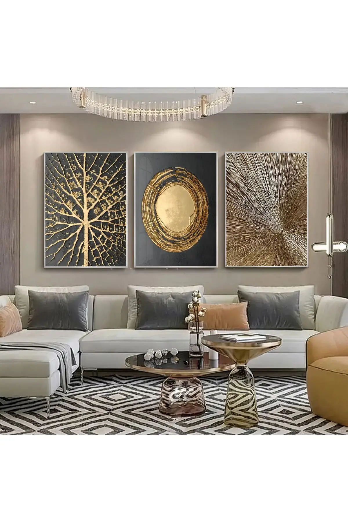 Altın Patlama Üçlü Metal Çerçeveli Tablo Seti Hakkında