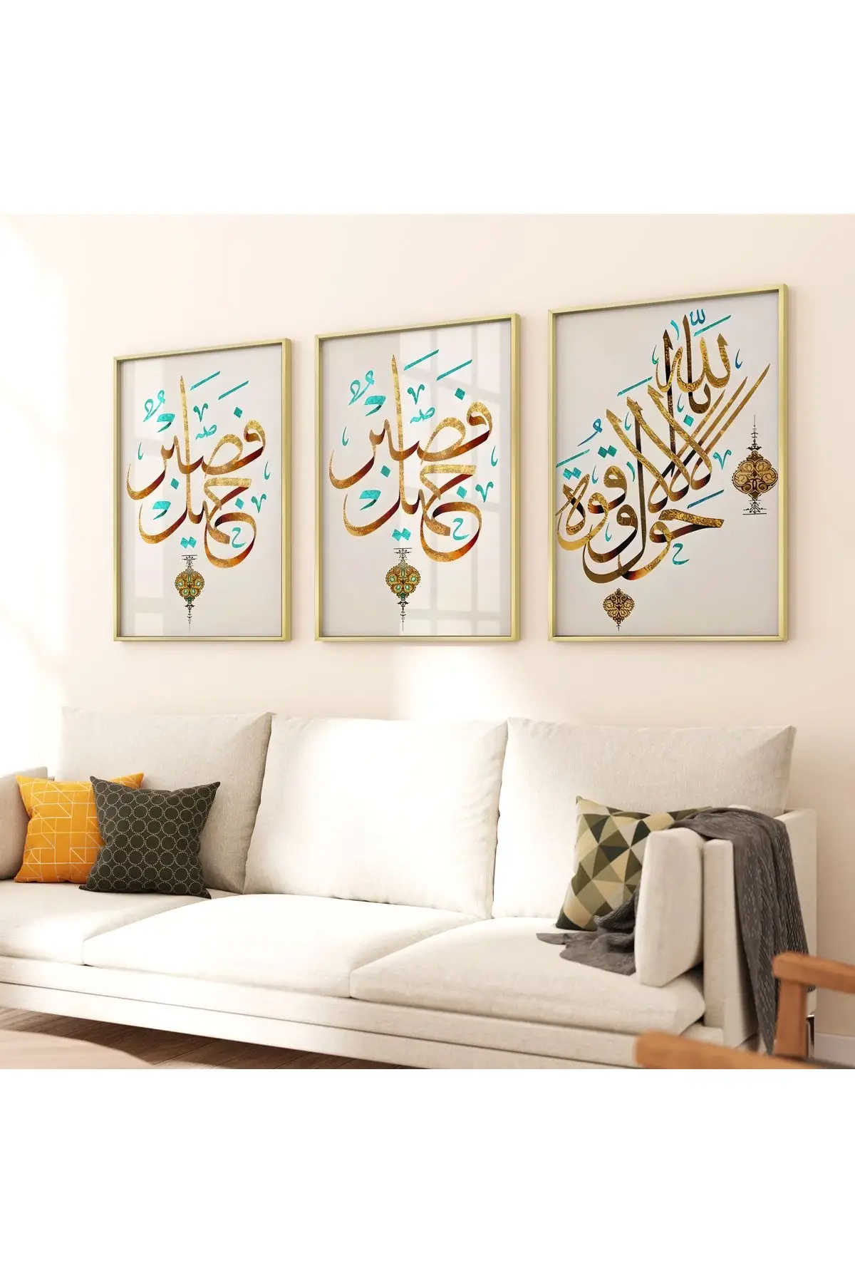 Altın Sözler: Arapça Hat Sanatı Üçlü Metal Çerçeveli Tablo Seti