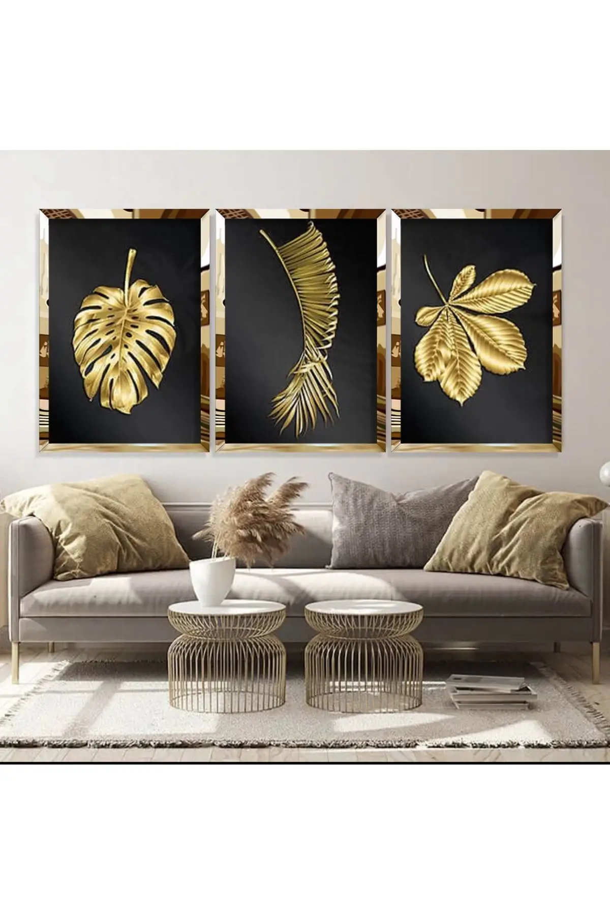 Altın Yapraklar 3'lü Gold Pleksi Tablo Takımı Hakkında