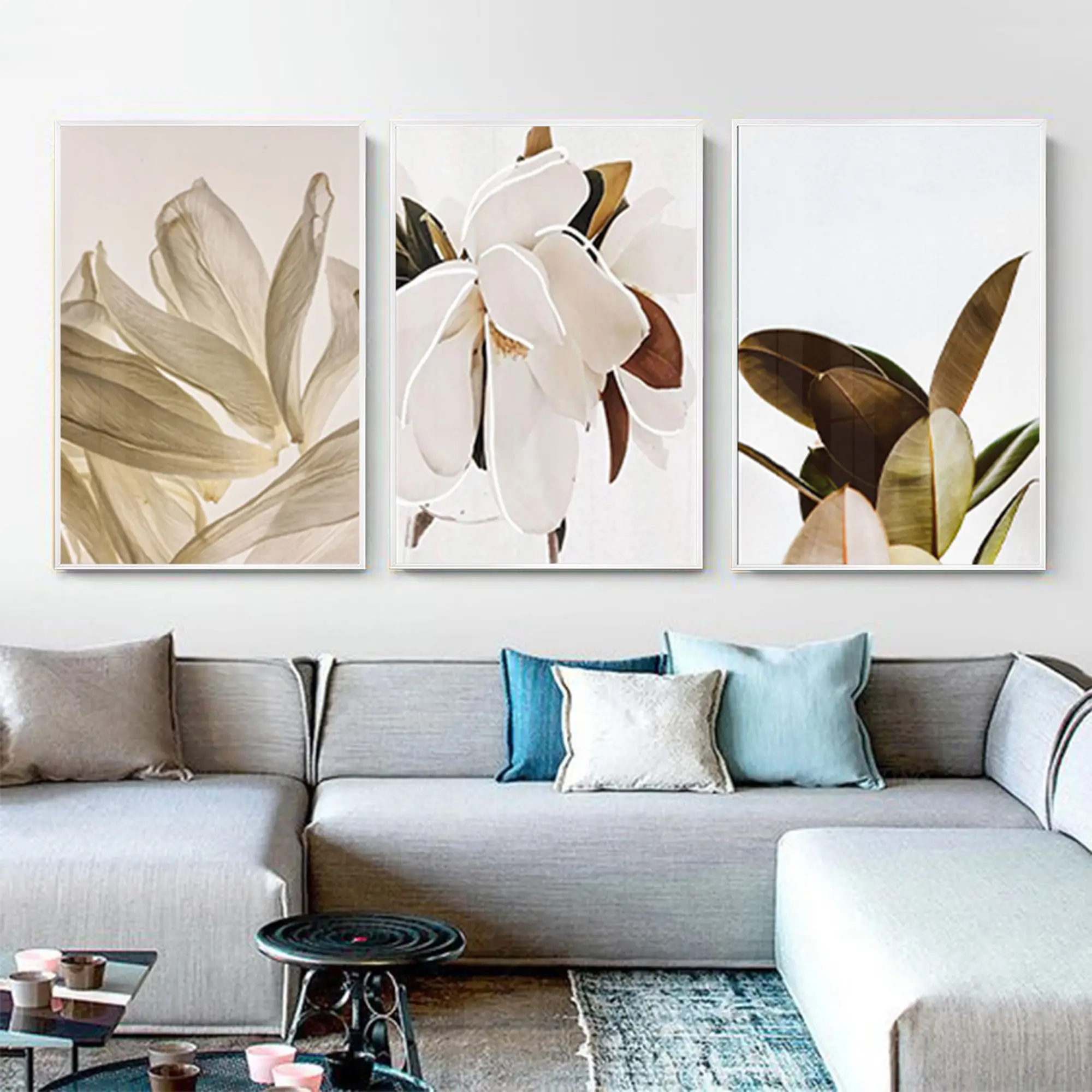 Beyaz Çiçek Desenli Metal Çerçeveli Tablo Seti Beyaz Hakkında