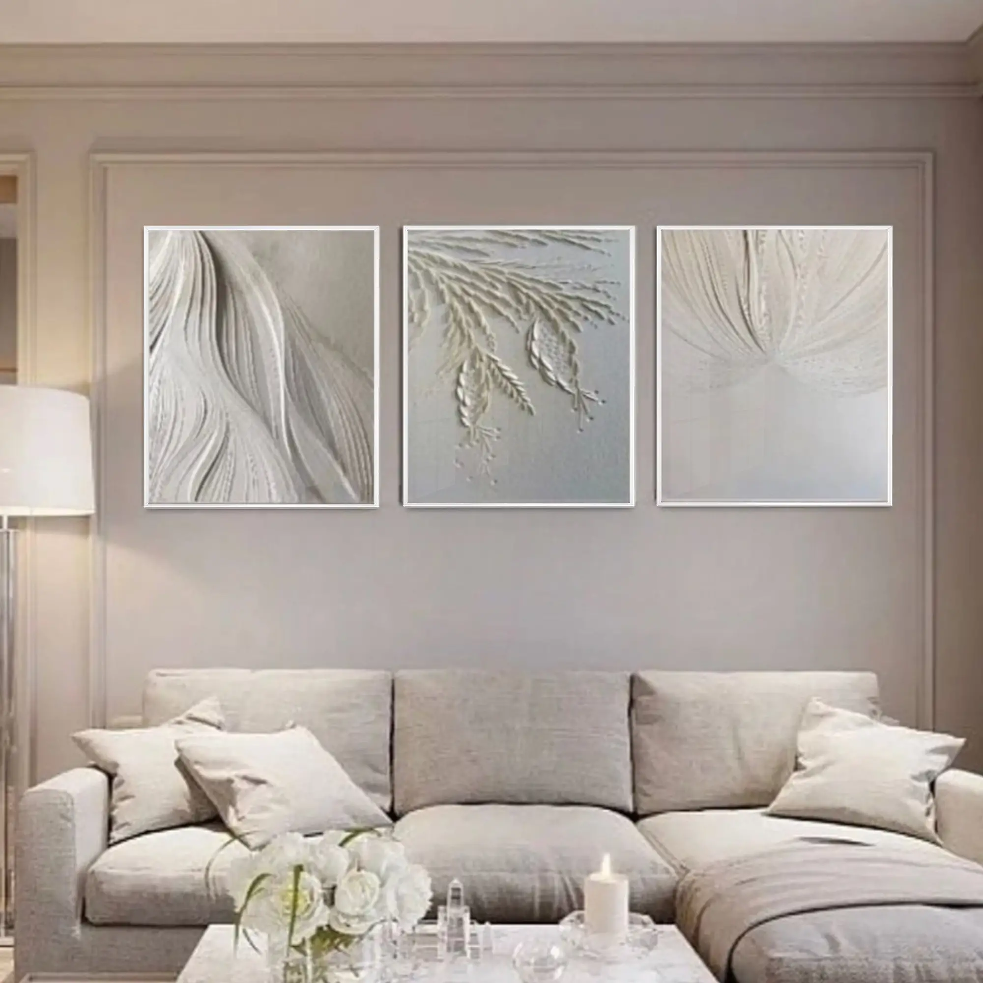 Beyaz Çiçek Desenli Metal Çerçeveli Tablo Seti Beyaz Hakkında