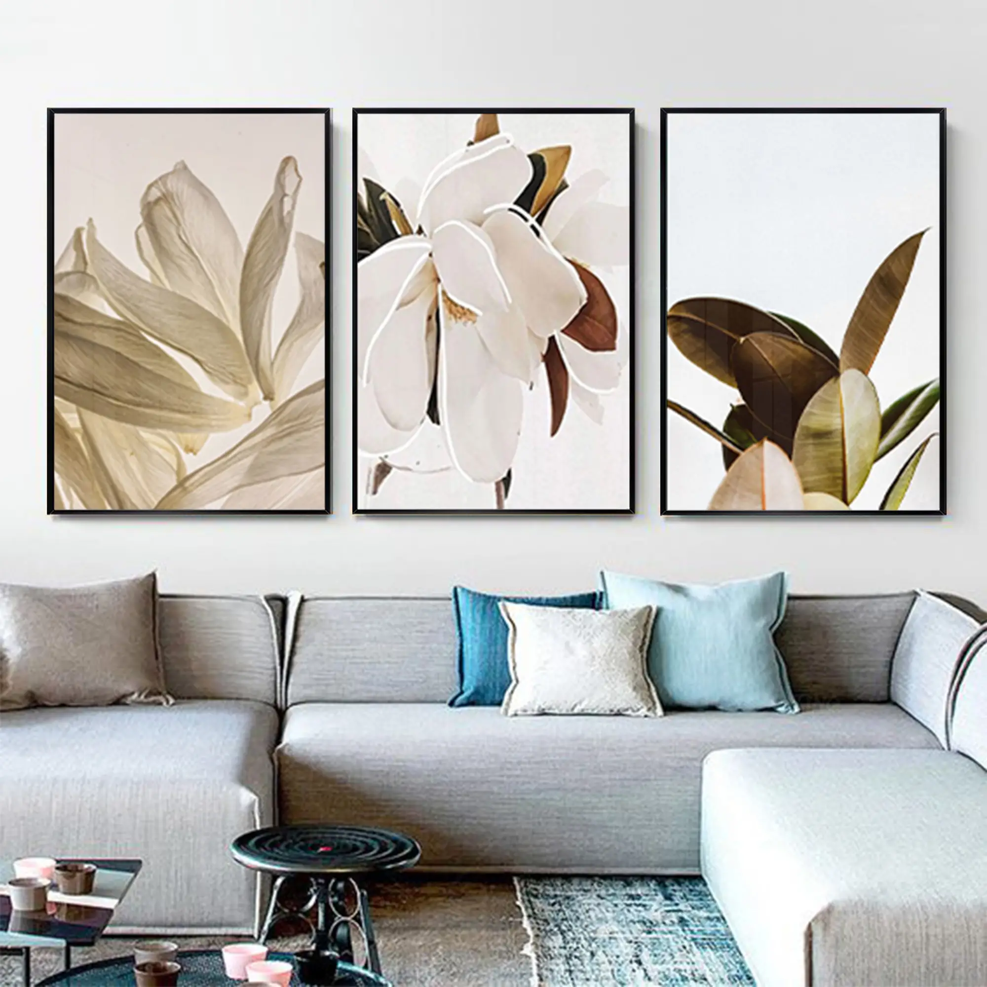 Beyaz Çiçek Desenli Metal Çerçeveli Tablo Seti Siyah Hakkında