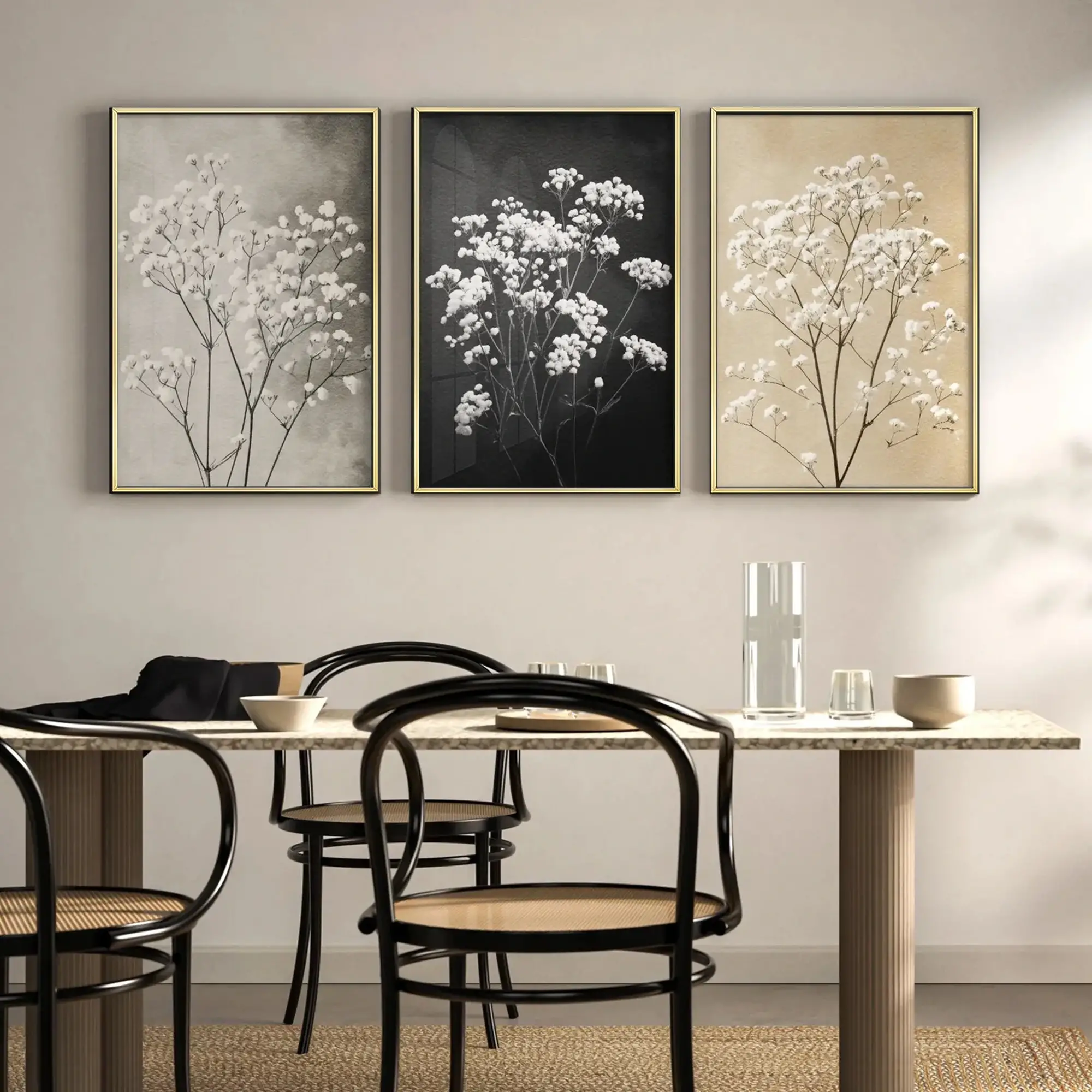 Beyaz Çiçek Detaylı Gold Metal Çerçeveli Cam Tablo Hakkında