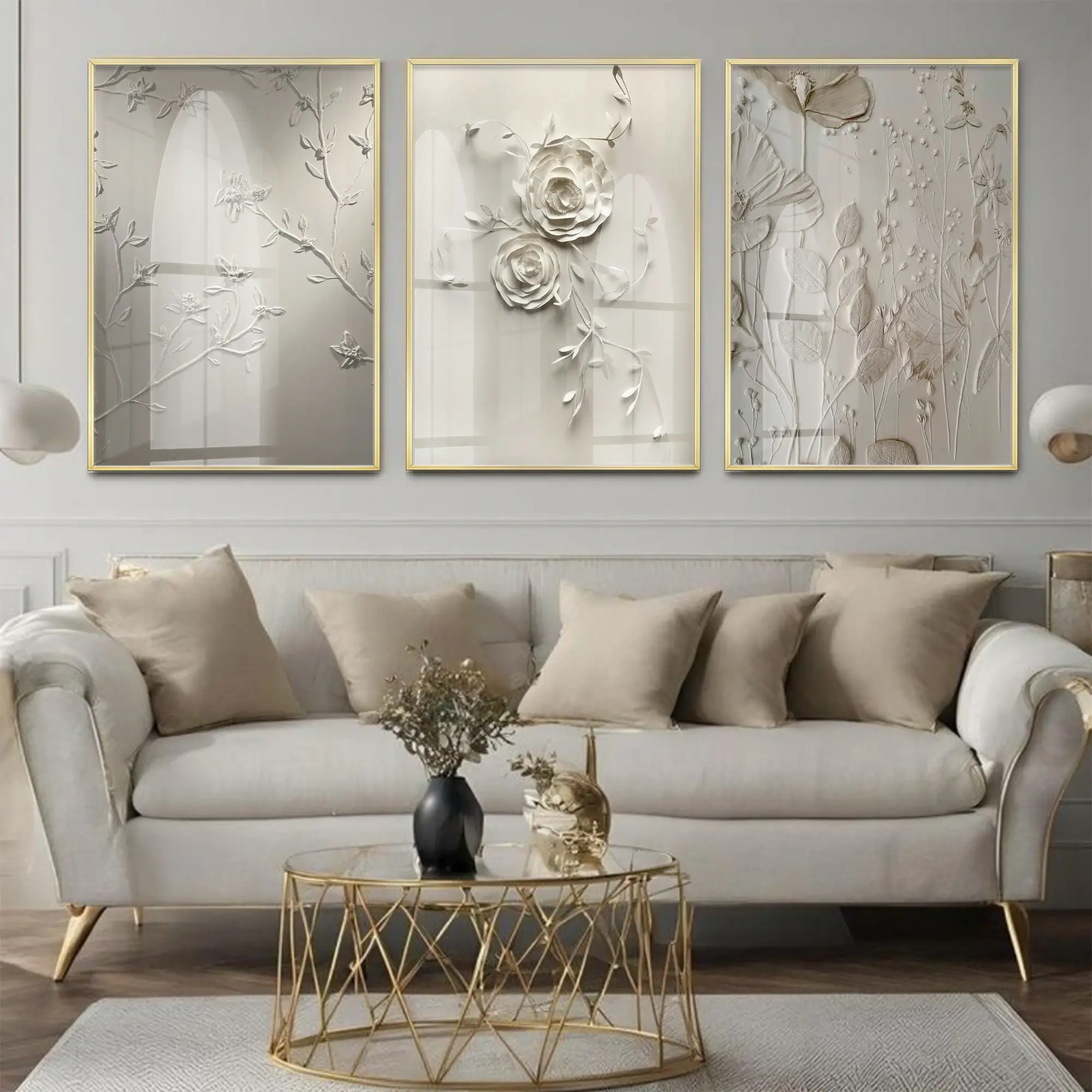 Bohem Çiçek Desenli Krem Tonlu Gold Metal Çerçeveli Cam Tablo Hakkında