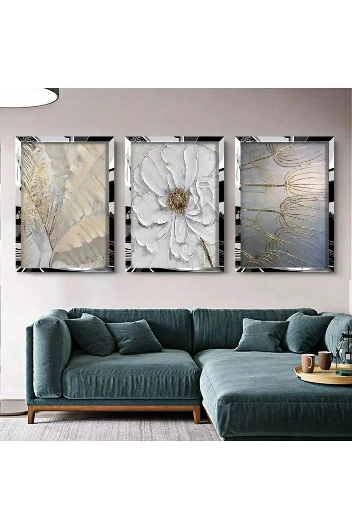 Çiçek Desenli 3'lü Gümüş Pleksili Tablo Seti Hakkında
