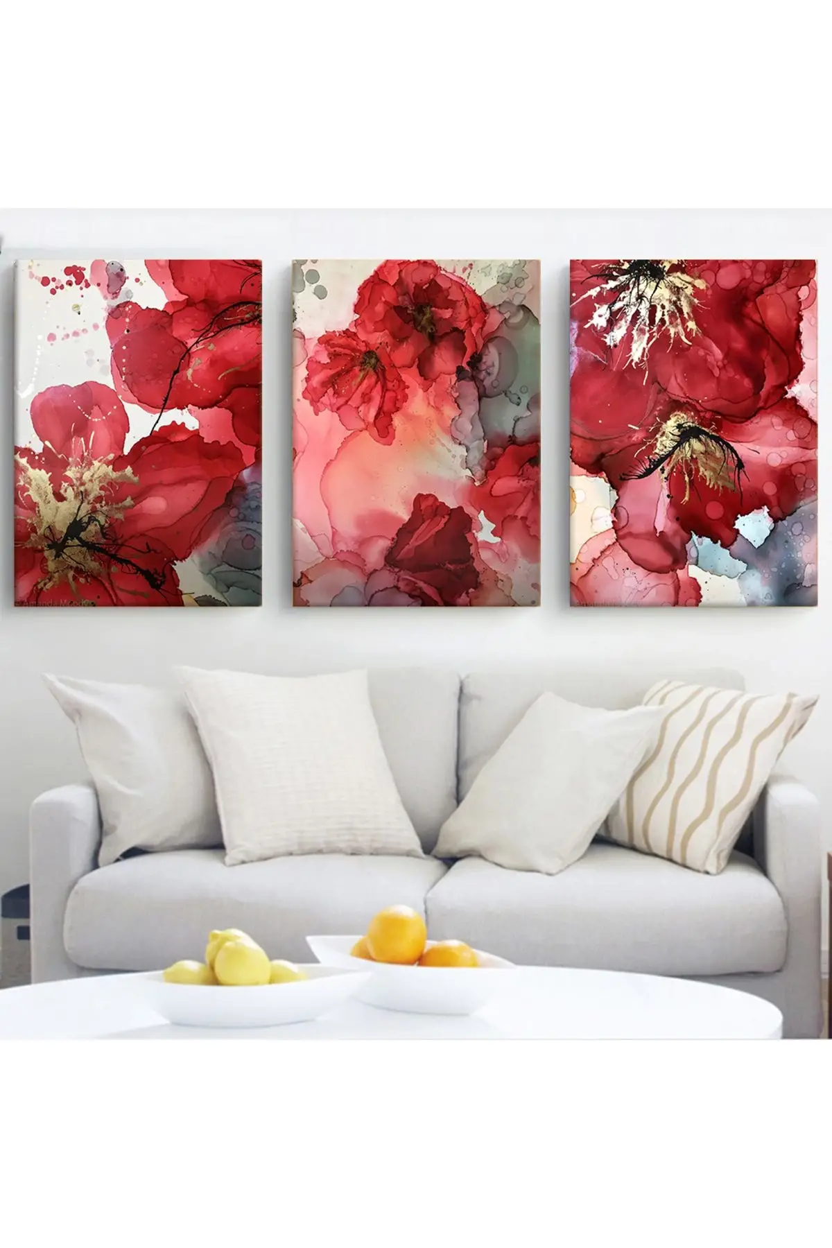 Dekoratif Kırmızı Gelincik Çiçekleri Üçlü Kombin Kanvas Tablo Seti Hakkında