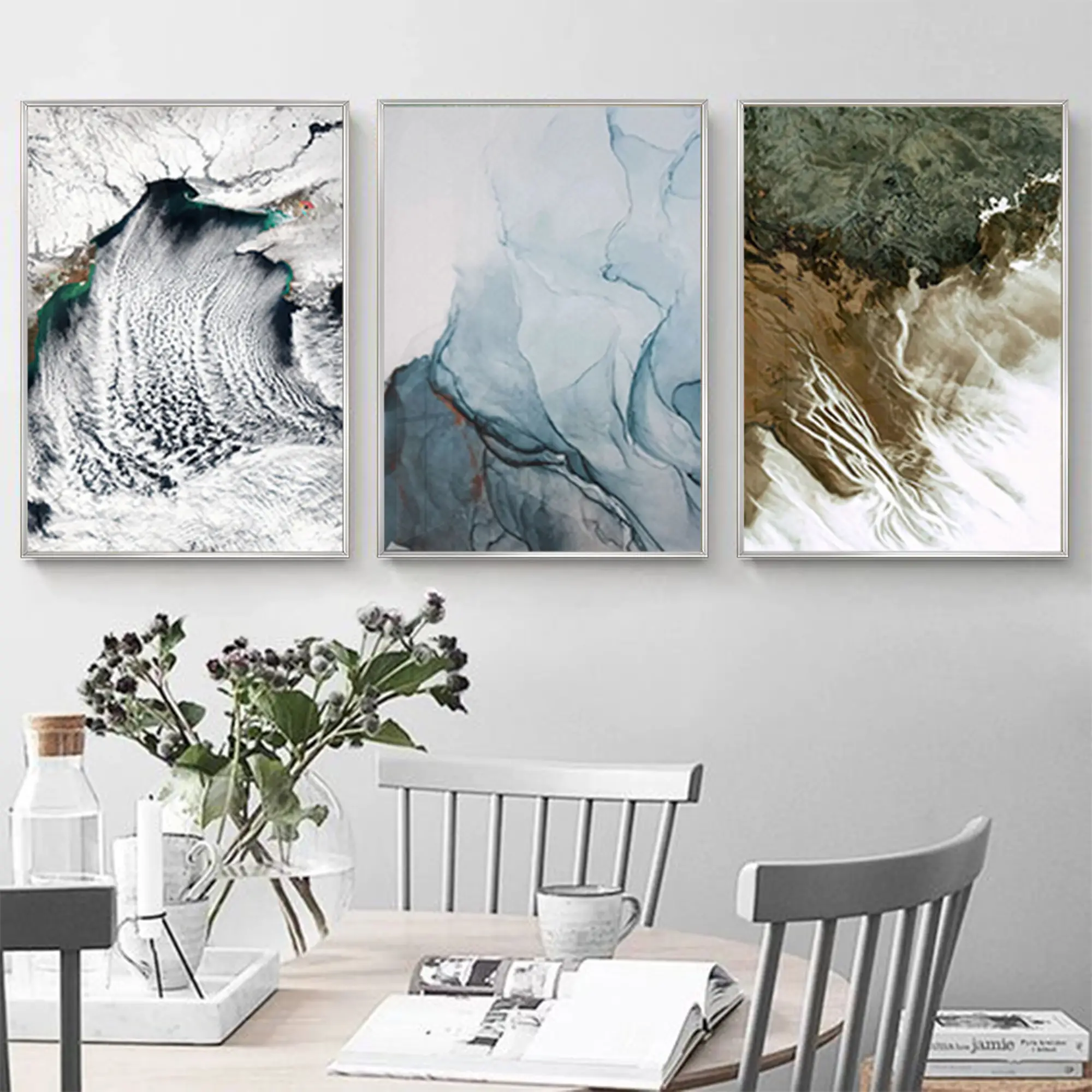 Deniz Dalgaları Soyut Desenli Metal Çerçeveli Tablo Seti Gümüş Hakkında