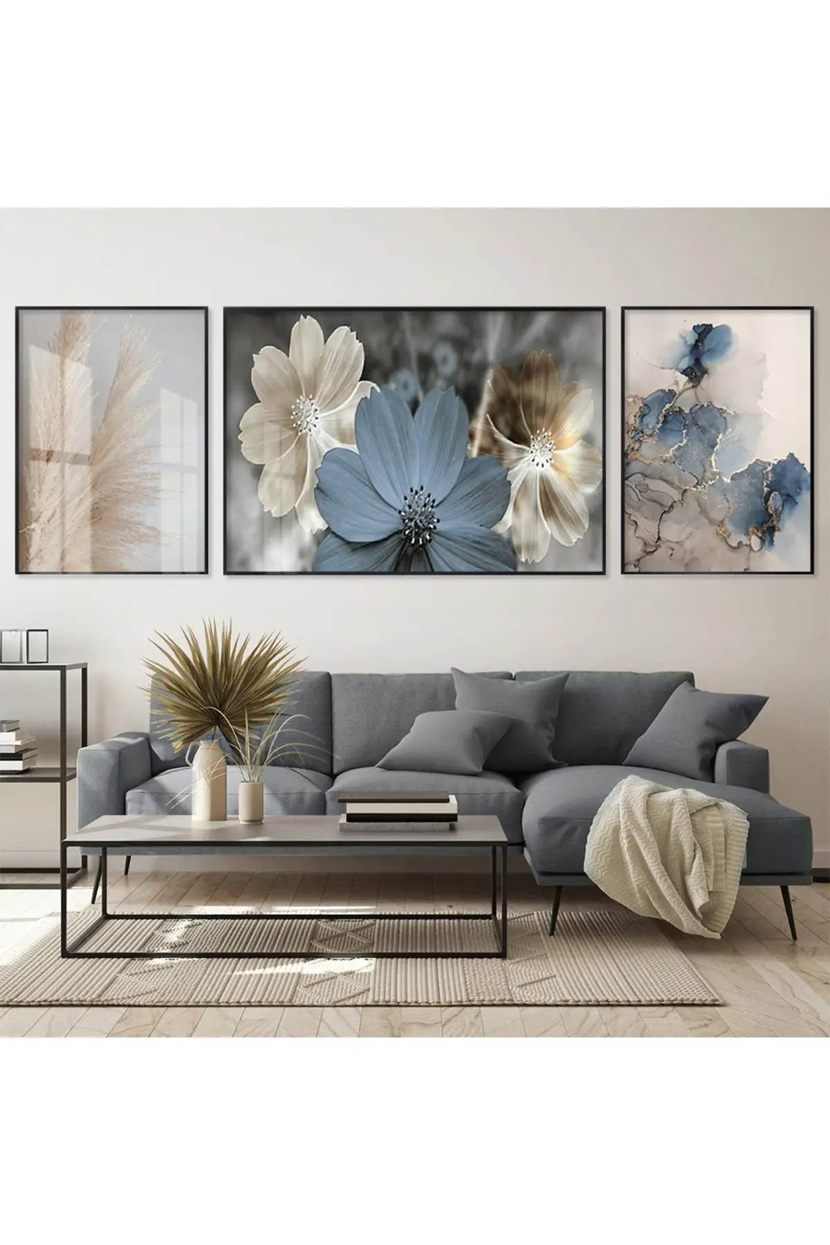 Doğal Estetik; Pastel Tonlu Çiçek Üçlü Metal Çerçeveli Tablo Seti Hakkında