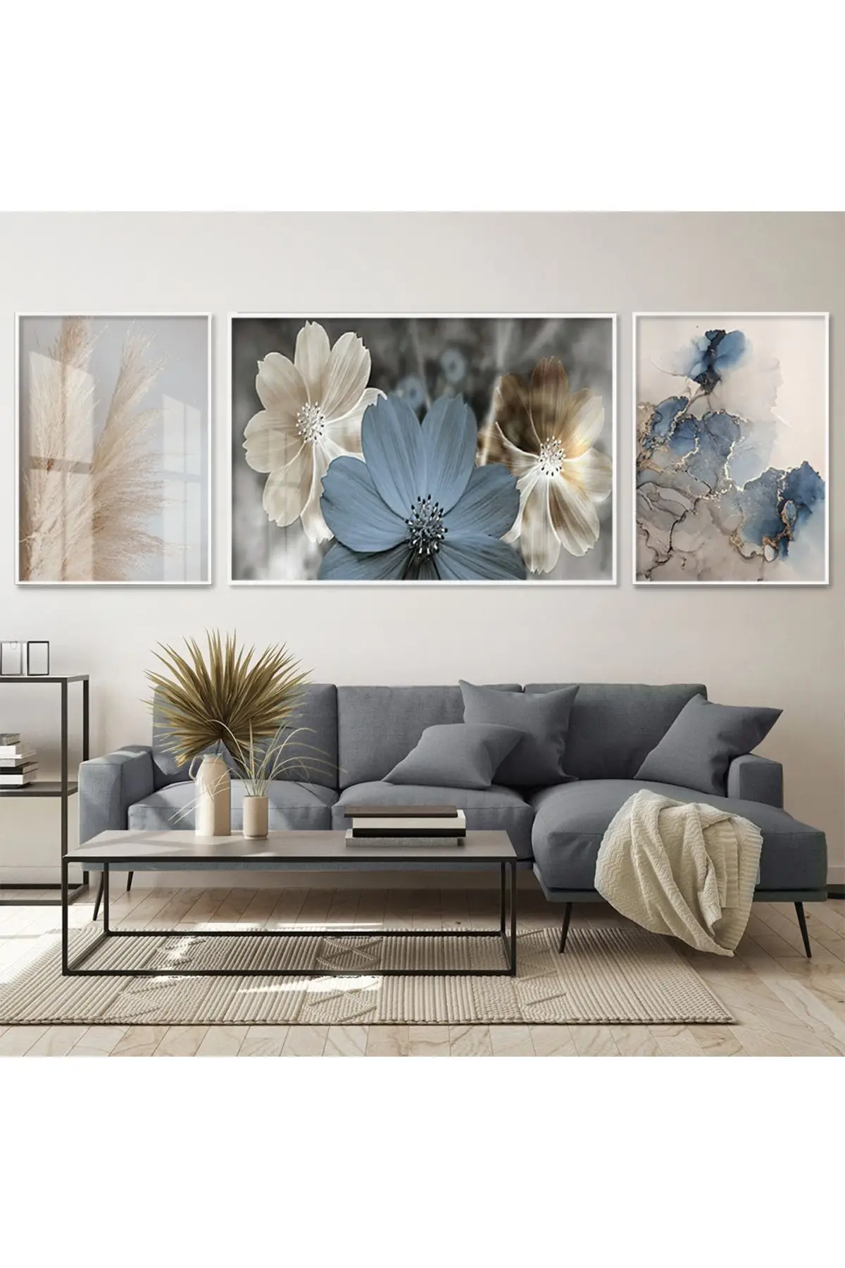 Doğal Estetik; Pastel Tonlu Çiçek Üçlü Metal Çerçeveli Tablo Seti Hakkında