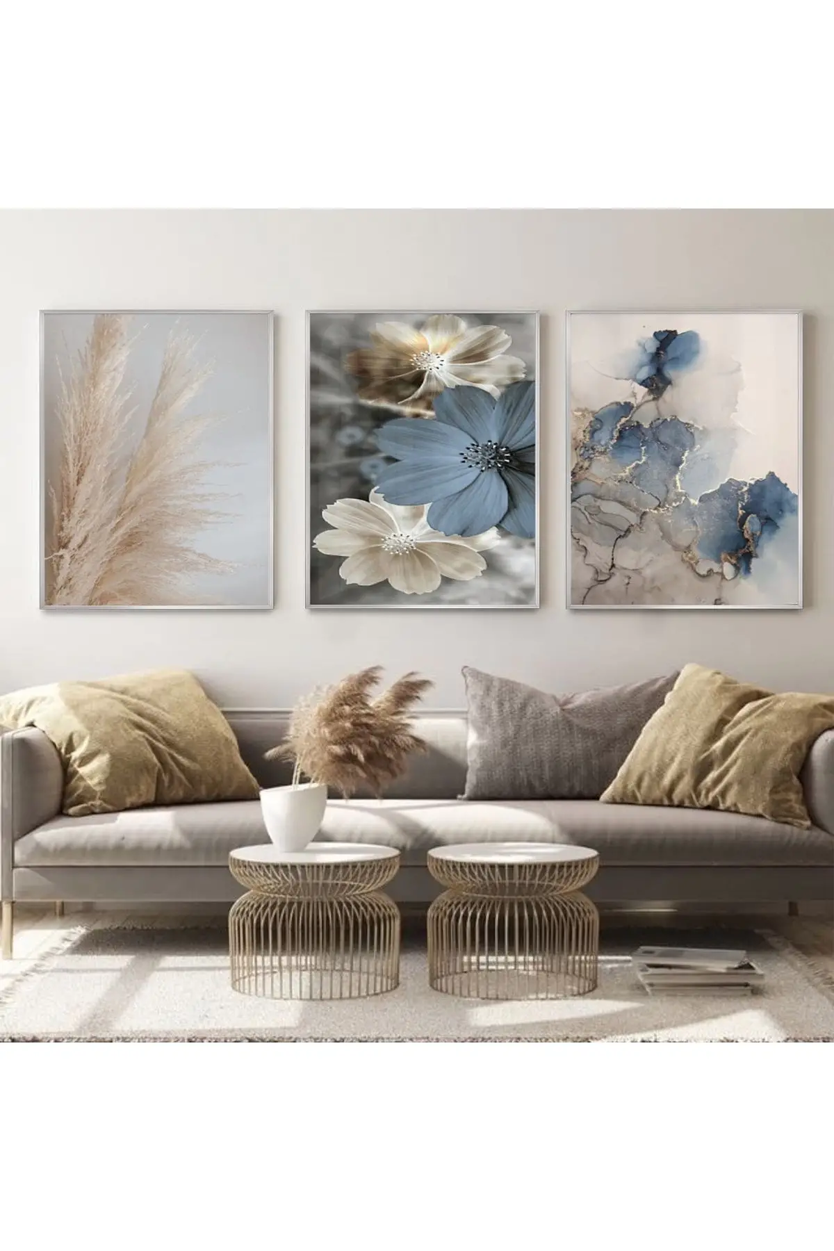 Doğal Melodiler: Mermerin Estetiği Ve Pastel Çiçekler Metal Çerçeveli Tablo Seti Hakkında