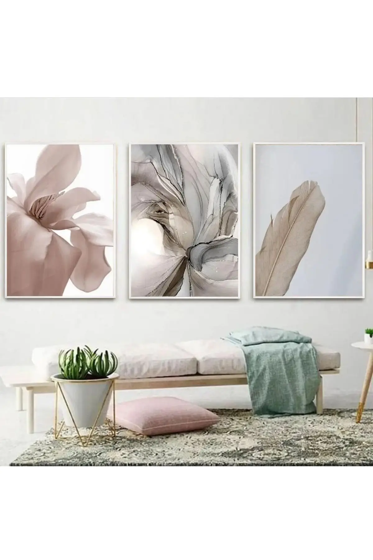 Doğanın Hafif Dokunuşu: Çiçek ve Tüyler Üçlü Metal Çerçeveli Tablo Seti Hakkında