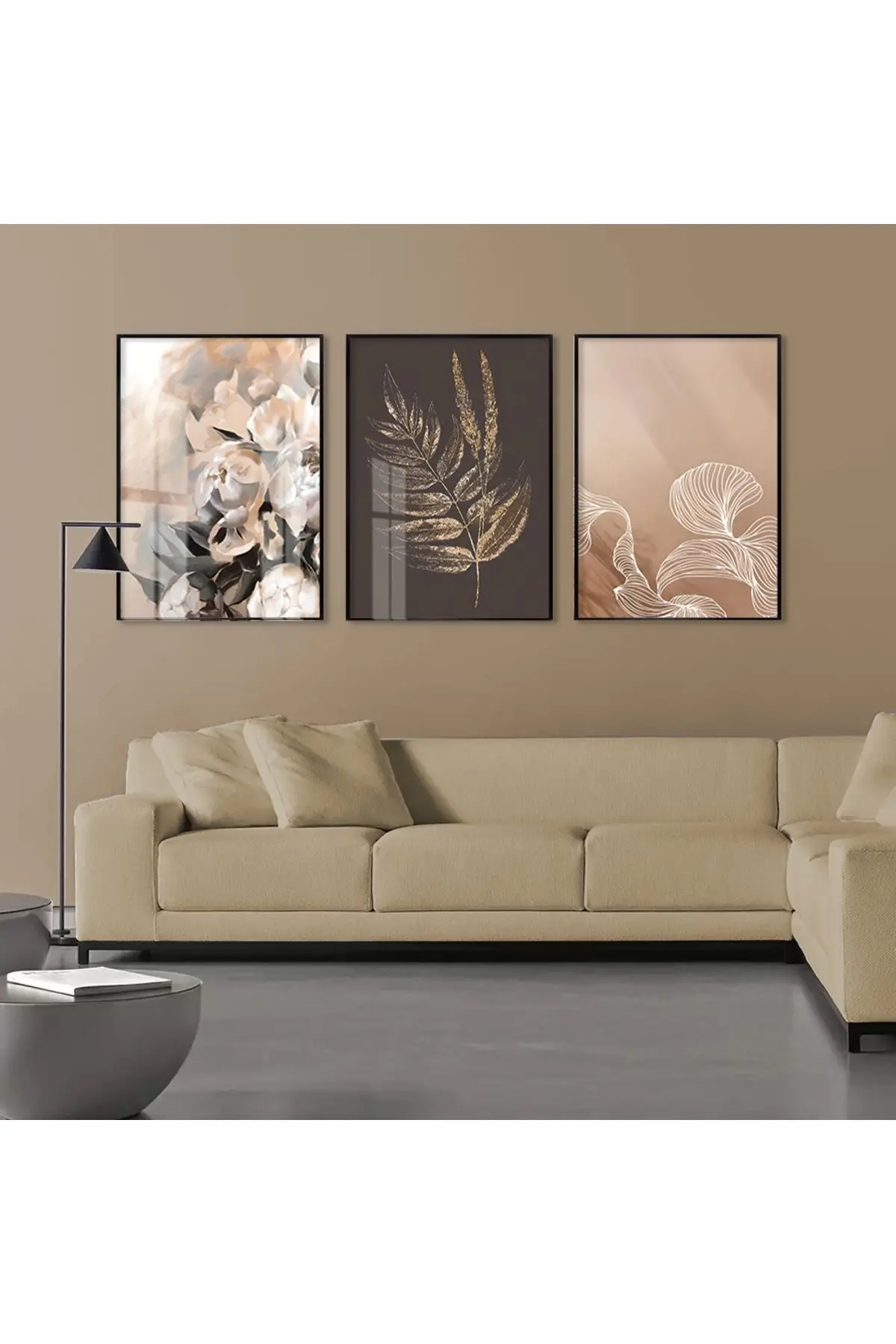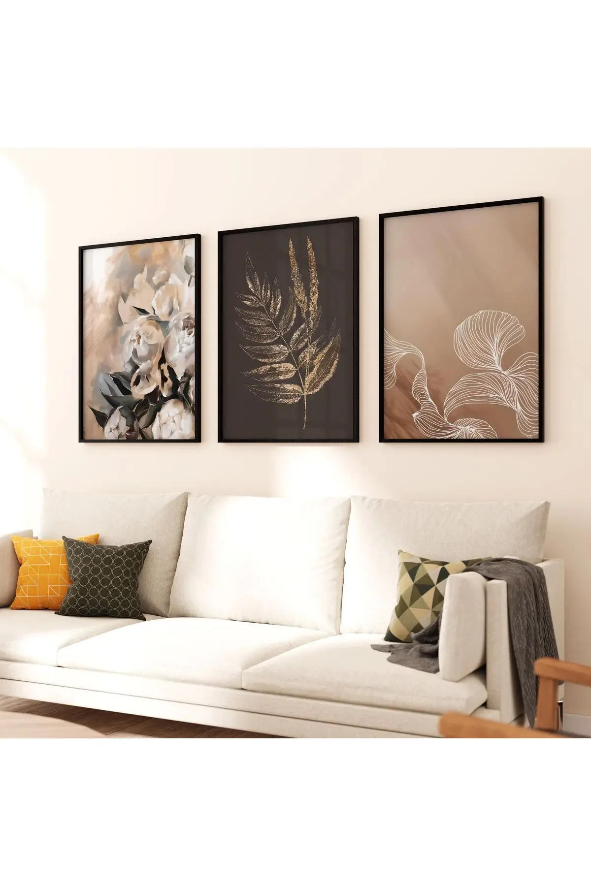 Bu üçlü tablo seti, doğanın incelikli güzelliklerini soyut bir perspektifle ele alır. İlk eser, rüya gibi bir hava yaratan yumuşak odaklı pembe çiçekleri betimlerken, ikinci eser detaylı çizimlerle yaprak veya tüyleri ön plana çıkarır. Üçüncü eser ise, zarif bir beyaz çiçeği, belirgin yaprakları ve çiçek tozları ile gösterir. Bu sanat eserleri, sade ve modern bir oturma odasına doğal bir zarafet katarken, %100 alüminyum metal çerçeve ve gerçek kırılmaz cam ile kalitesini ve estetiğini uzun süre korur.