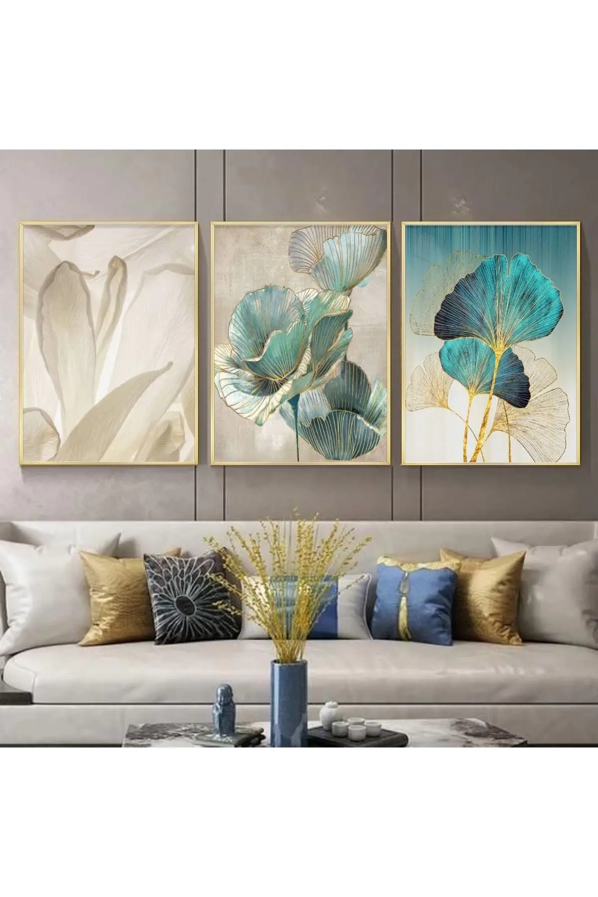 Doğanın Şiiri: Çiçek ve Yaprakların Renkli Sinfonisi Üçlü Metal Çerçeveli Tablo Seti Hakkında