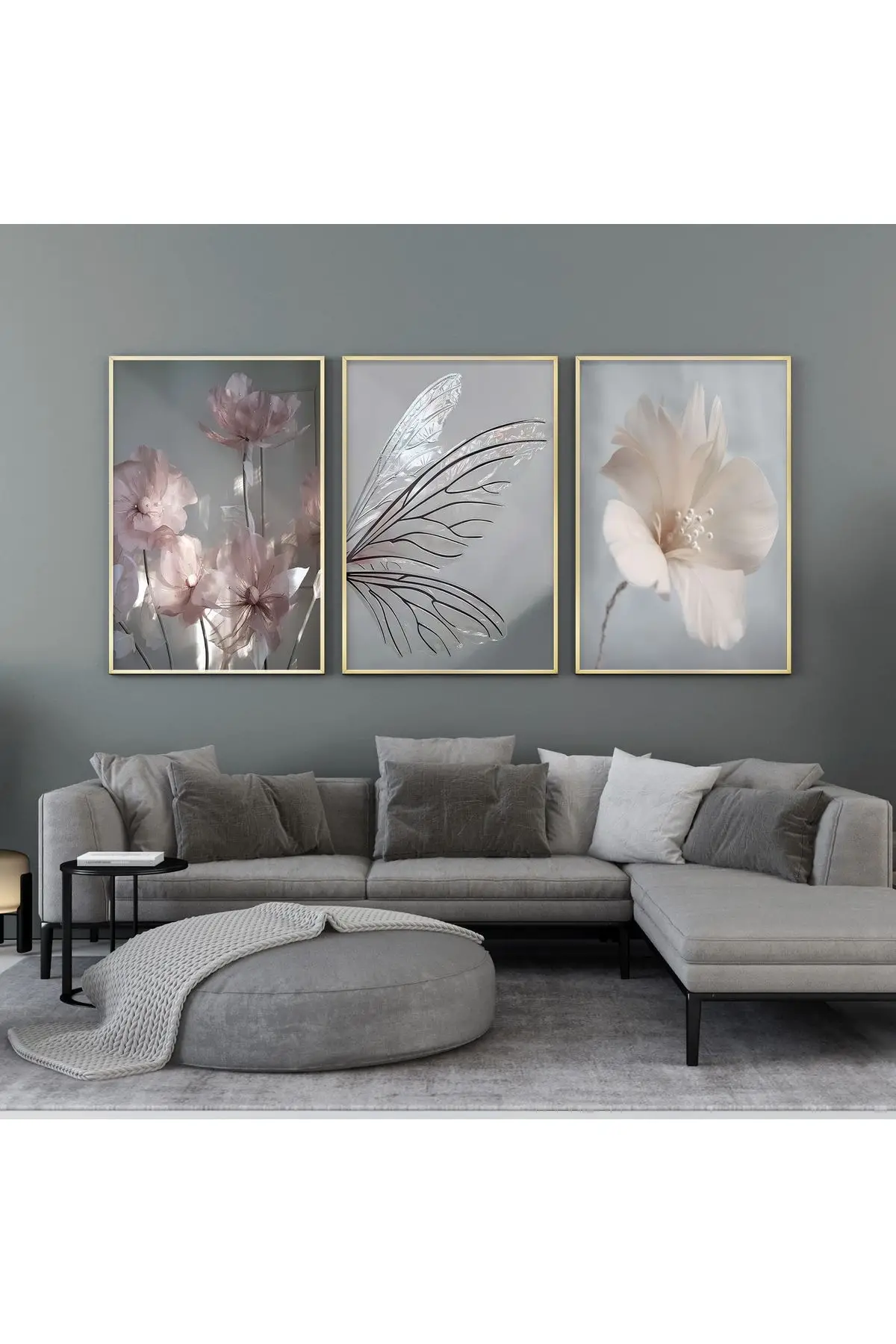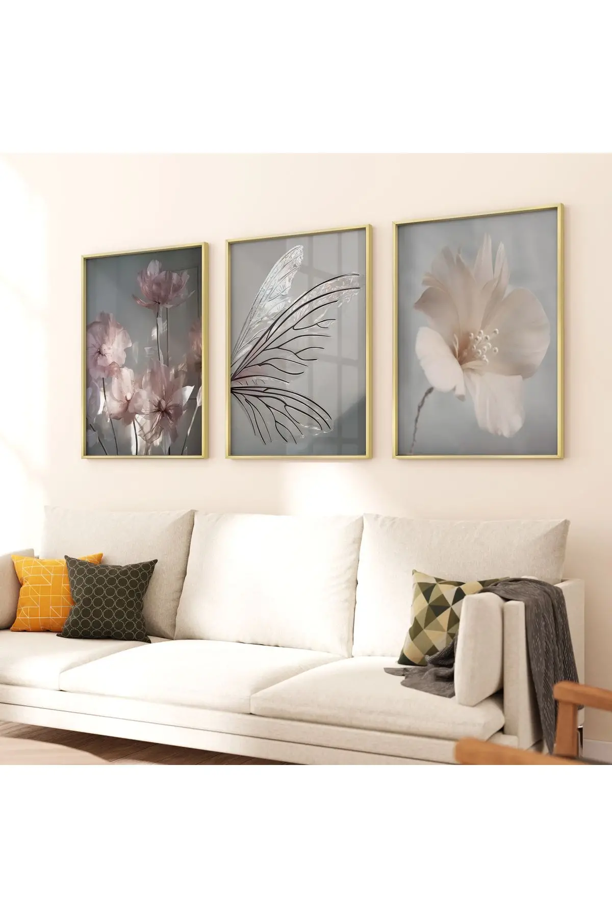 Doğanın Zarafeti: Çiçek ve Yaprak Motifleriyle Metal Çerçeveli Üçlü Tablo Seti Hakkında