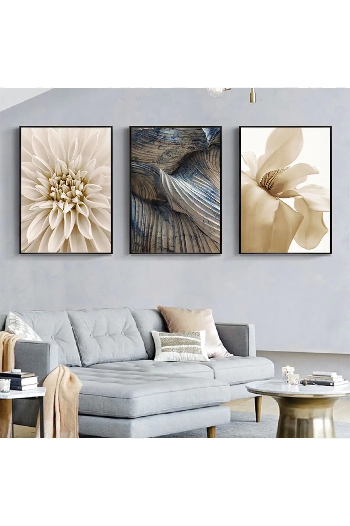 Ev Dekorasyonu İçin Sanatsal Dokunuş: Mermer Ve Çiçek Motifli Üçlü Metal Çerçeveli Tablo Takımı Hakkında