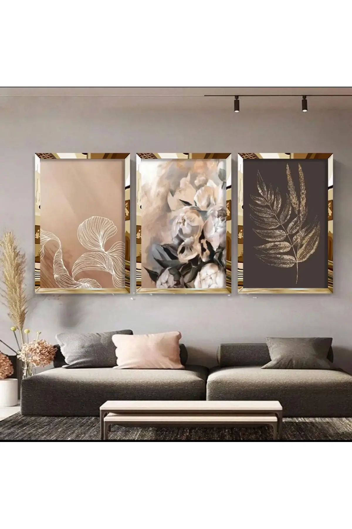 Gold Çiçekler Pleksi Dekoratif 3'lü Tablo Seti Hakkında