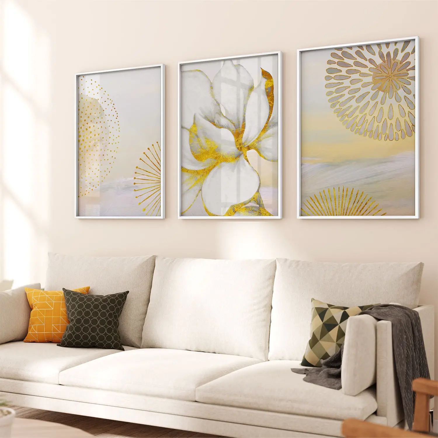 Gold Çiçekler Temalı Üçlü Metal Çerçeveli Tablo Seti Hakkında