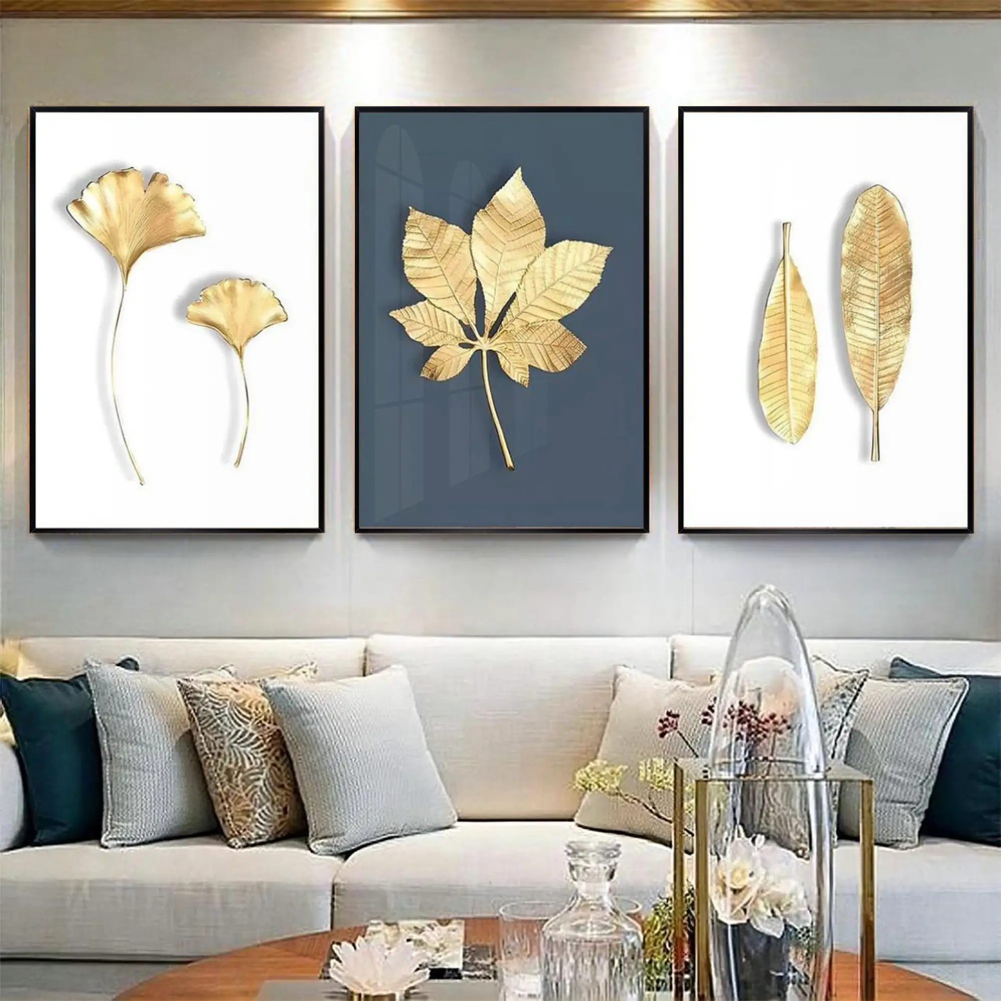 Gold Desenli Metal Çerçeveli Tablo Seti Siyah