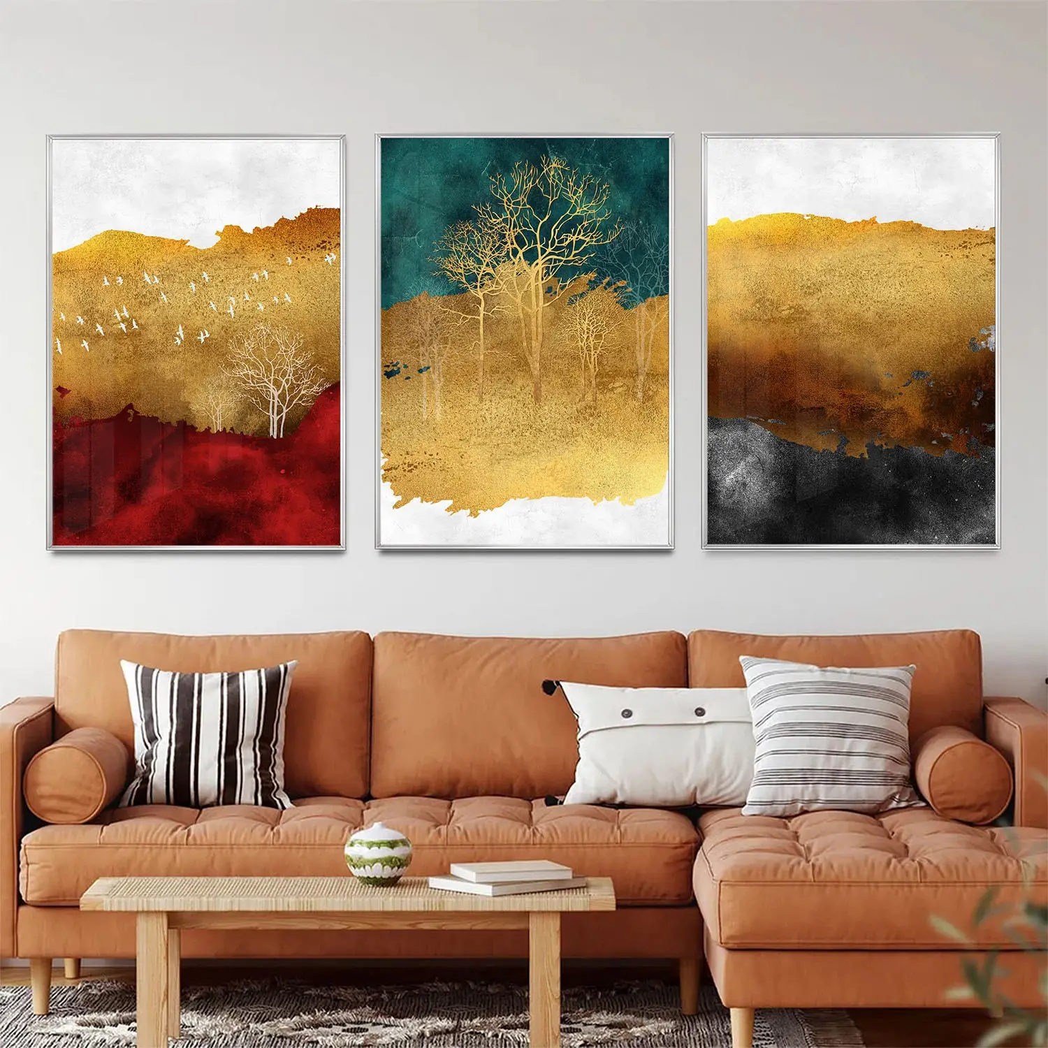 Gold Karışım Üçlü Metal Çerçeveli Tablo Seti