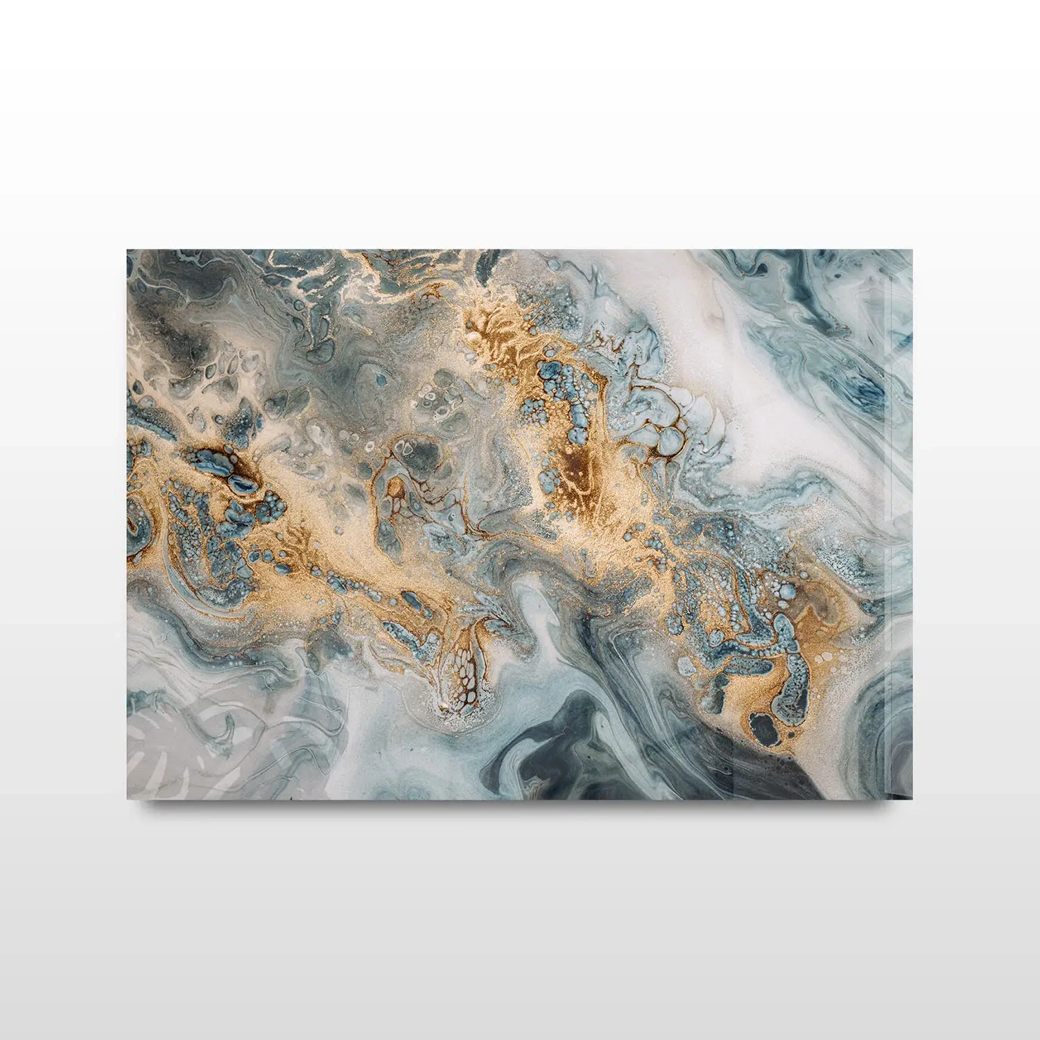 Gold ve Beyaz Tonlar Mermer Desenli Tekli Yatay Cam Tablo Hakkında