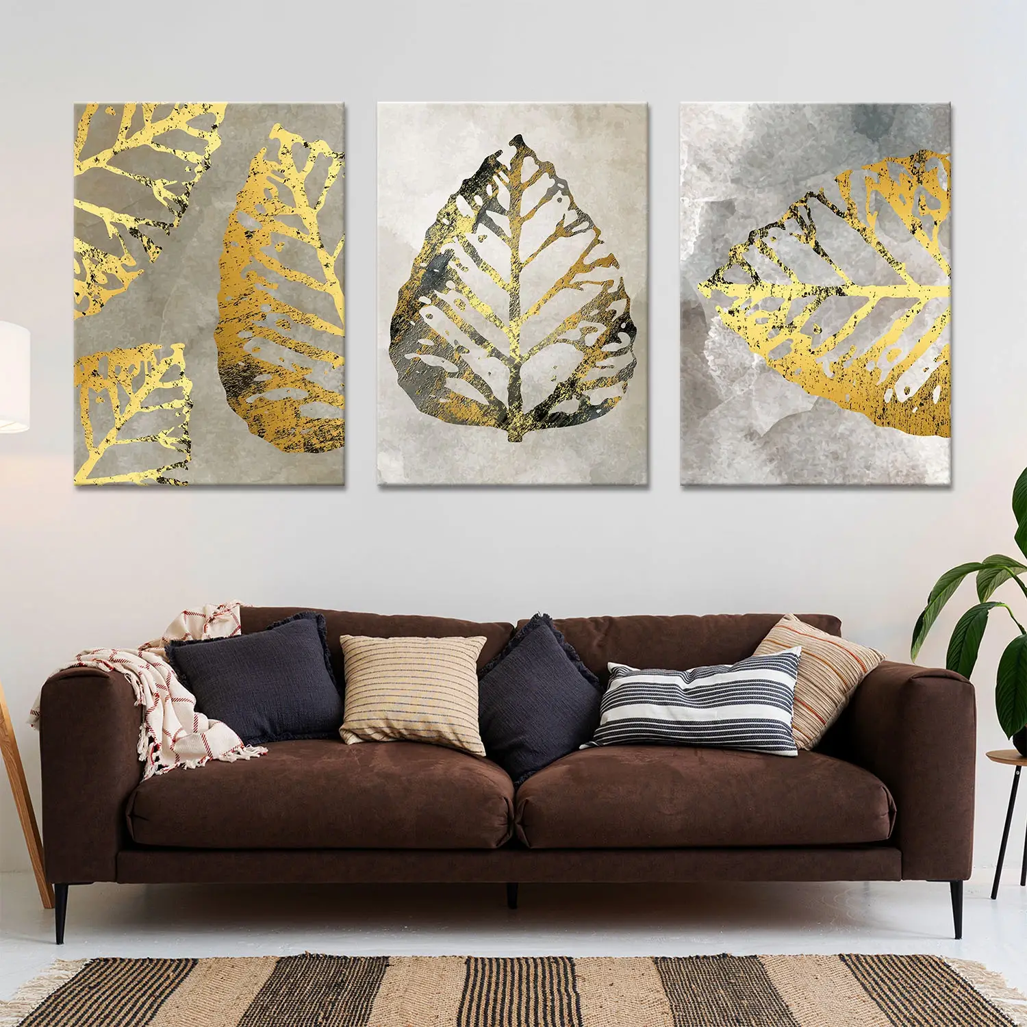 Gold Yaprak Desenli Üçlü Kanvas Tablo Seti Hakkında
