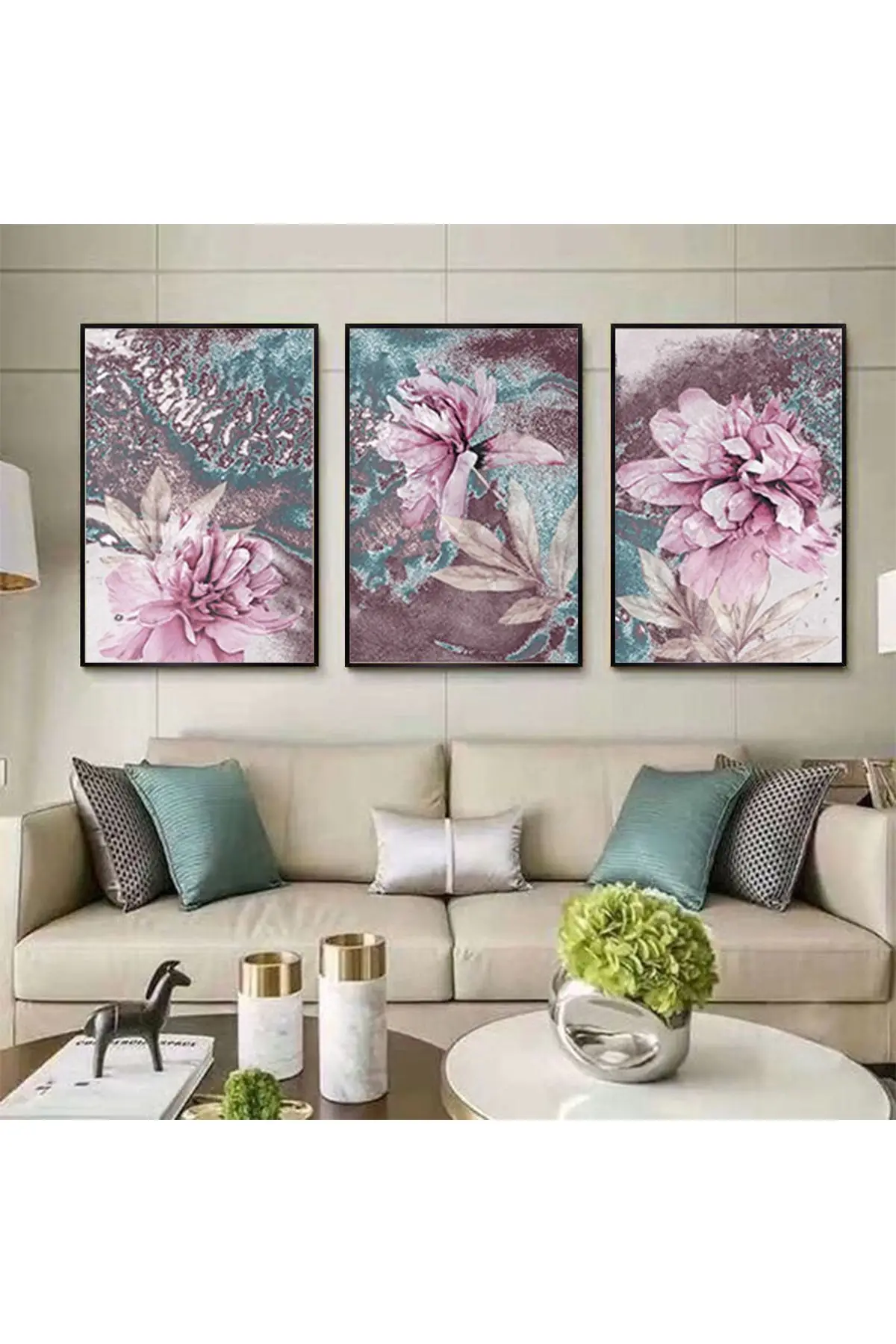 Harmoni Bahçesi: Çiçek Motifli Siyah Metal Çerçeveli Tablo Seti Hakkında