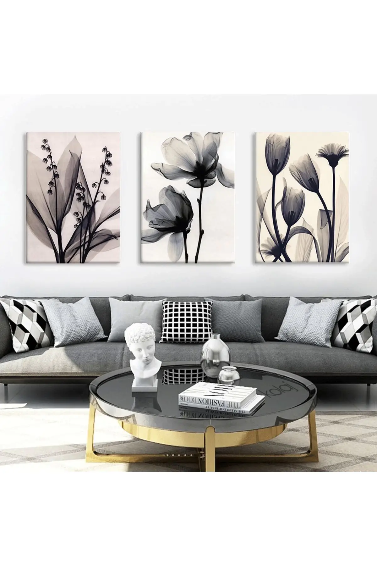 İskandinav Tarzı Soyut Minimalist Siyah Beyaz Çiçekler Üçlü Kanvas Tablo Seti Hakkında