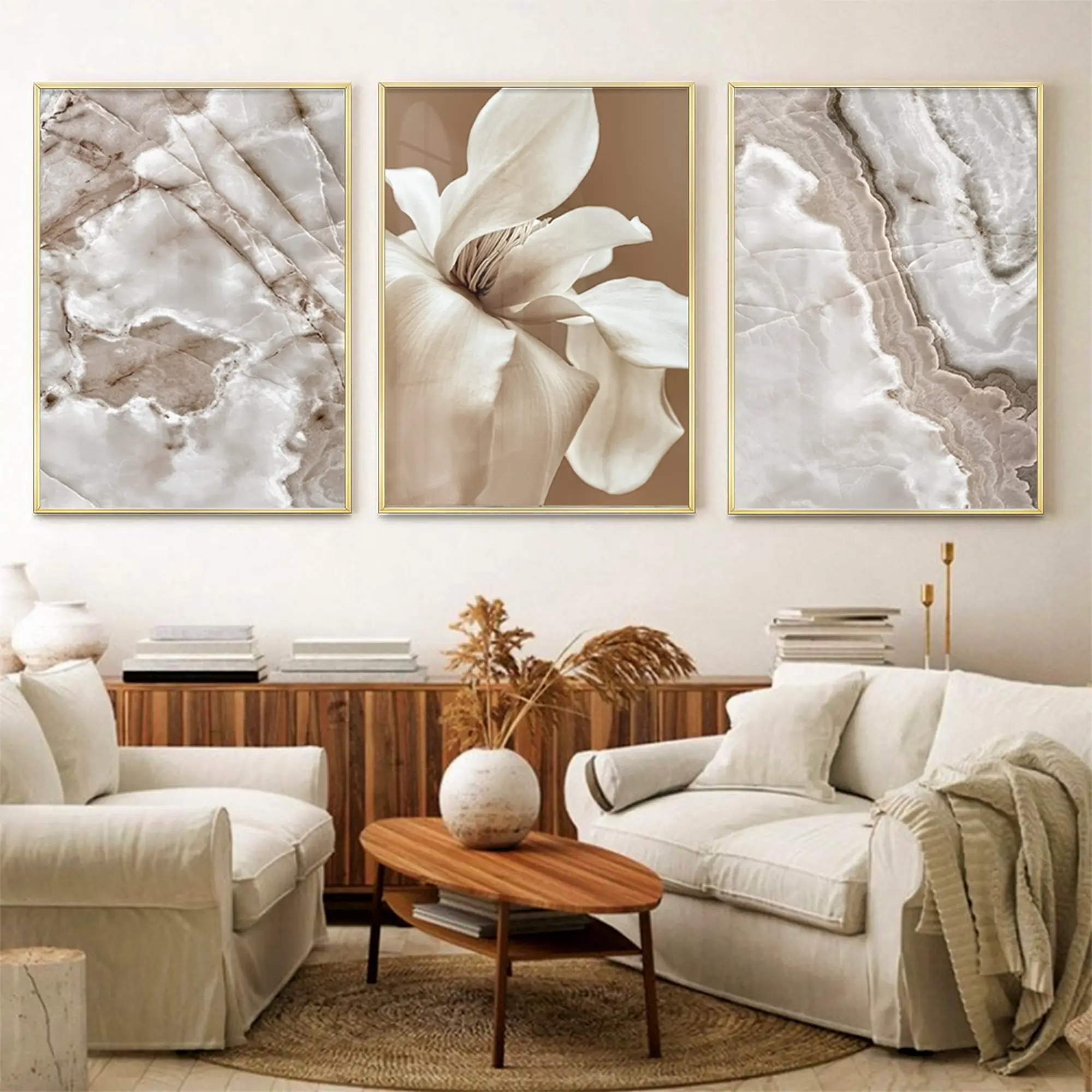 Kahve Tonları Çiçek Desenli Metal Çerçeveli Tablo Seti Altın Hakkında