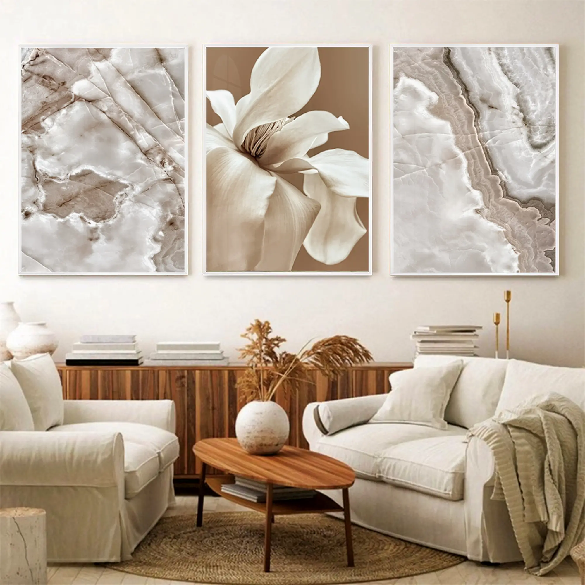 Kahve Tonları Çiçek Desenli Metal Çerçeveli Tablo Seti Beyaz Hakkında