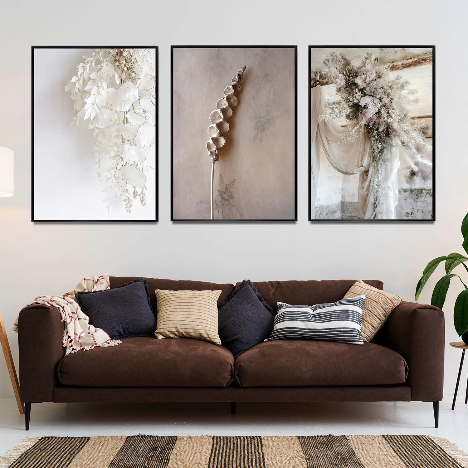 Kahverengi Çiçek Desenli Üçlü Metal Çerçeveli Tablo Seti Hakkında