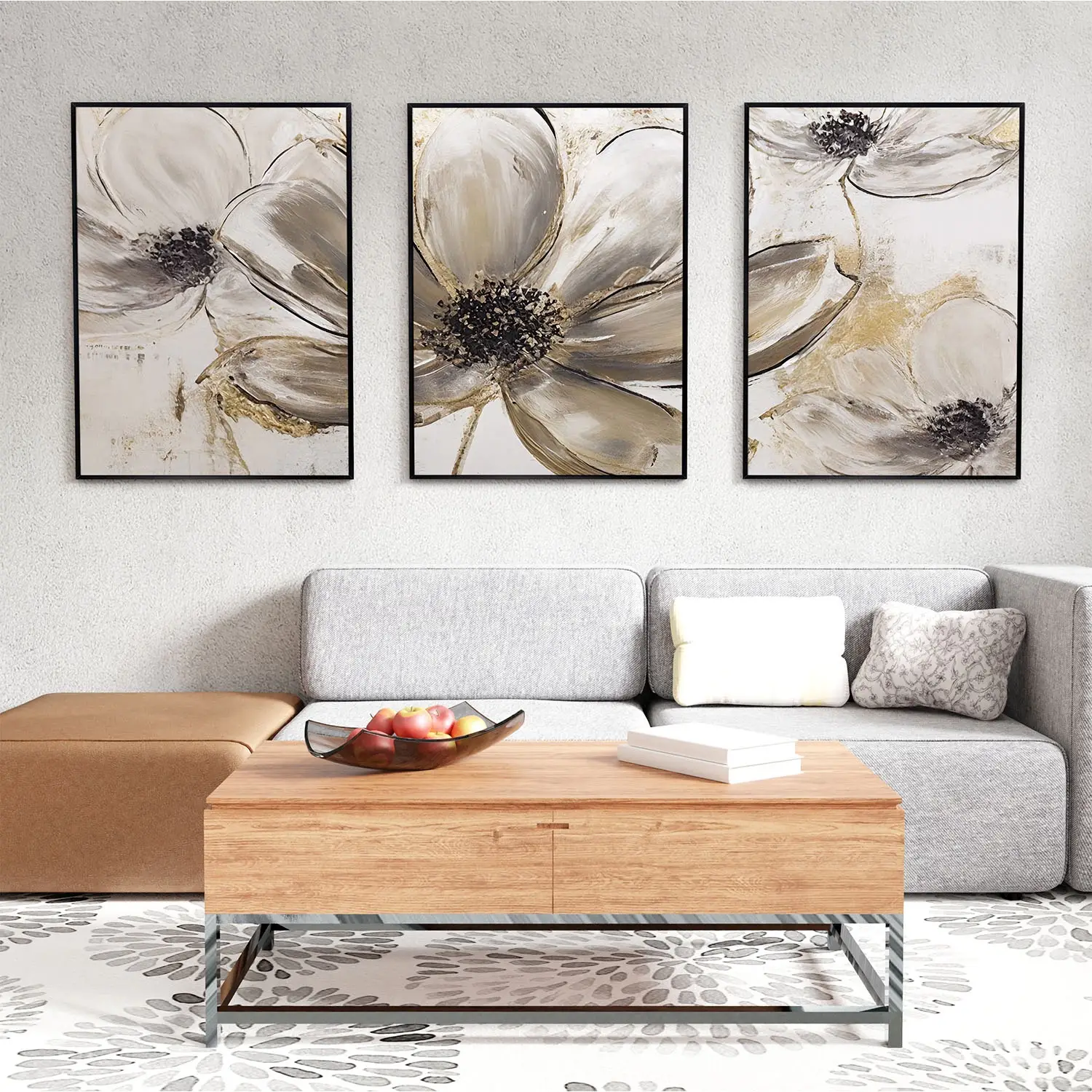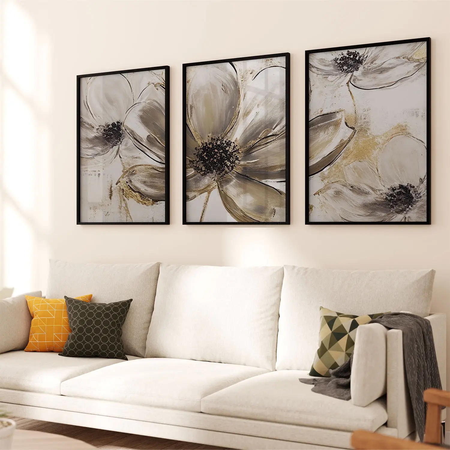 Kahverengi Çiçekler Desenli Üçlü Metal Çerçeveli Tablo Seti Hakkında
