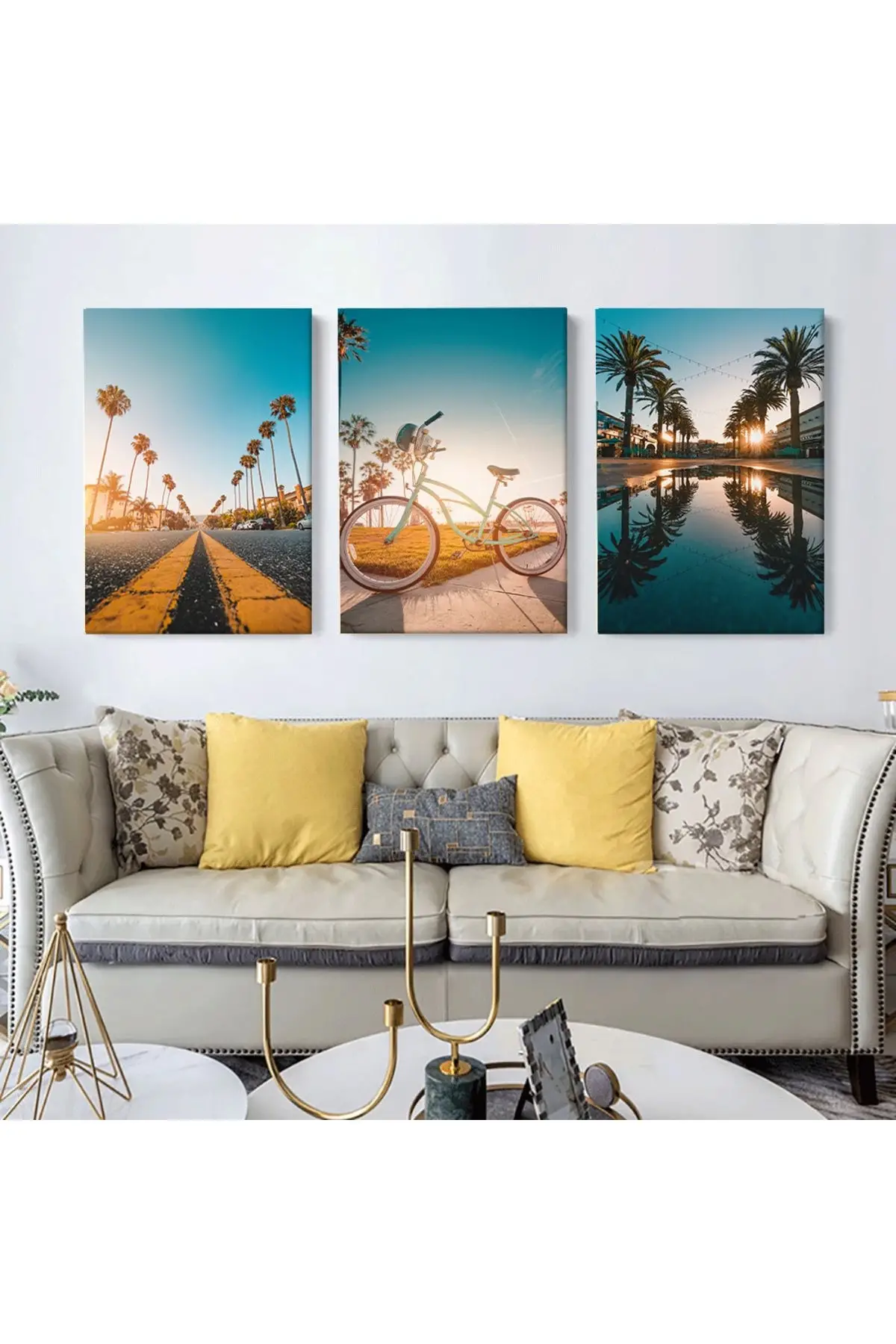 Kaliforniya'da Akşamüstü Dekoratif Üçlü Kanvas Tablo Seti Hakkında