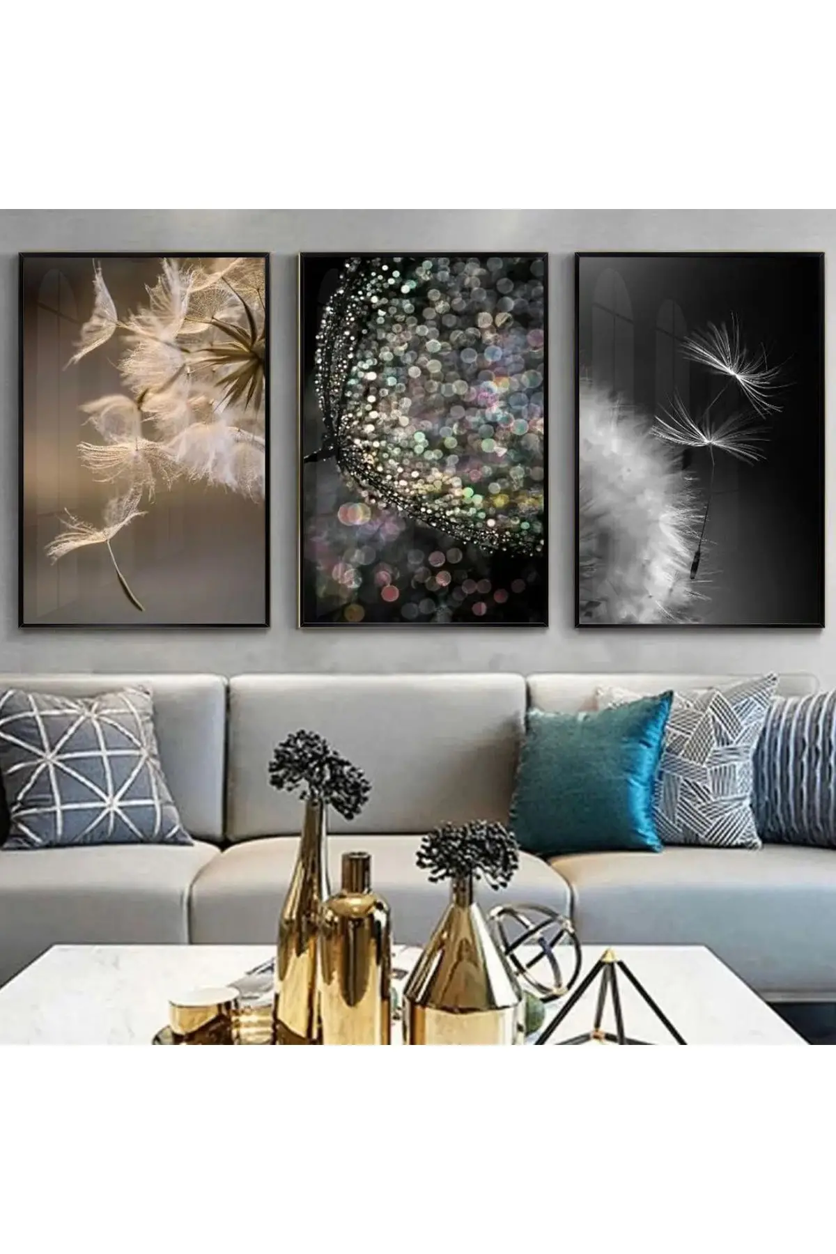 Karşı Konulmaz Zarafet: Dandelion Silüetleri Üçlü Metal Çerçeveli Tablo Seti Hakkında