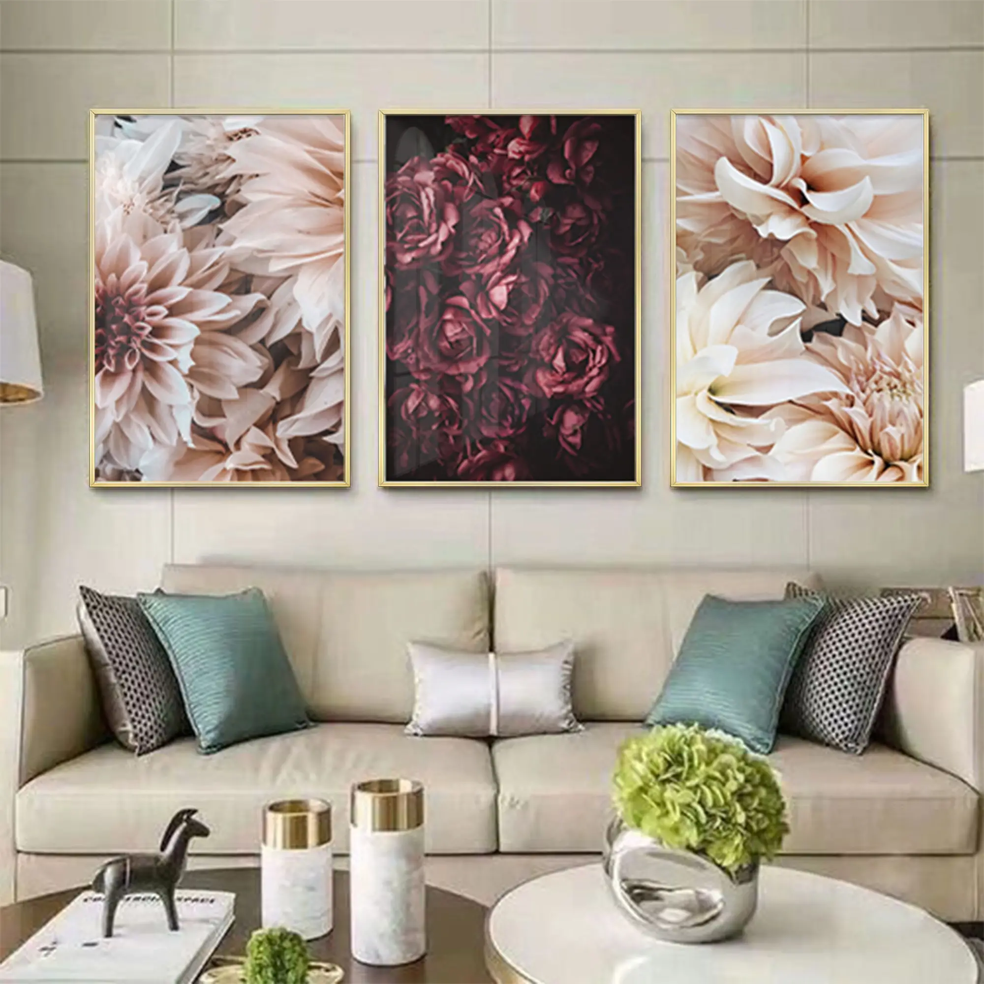 Kırmızı Çiçek Desenli Metal Çerçeveli Tablo Seti Altın Hakkında