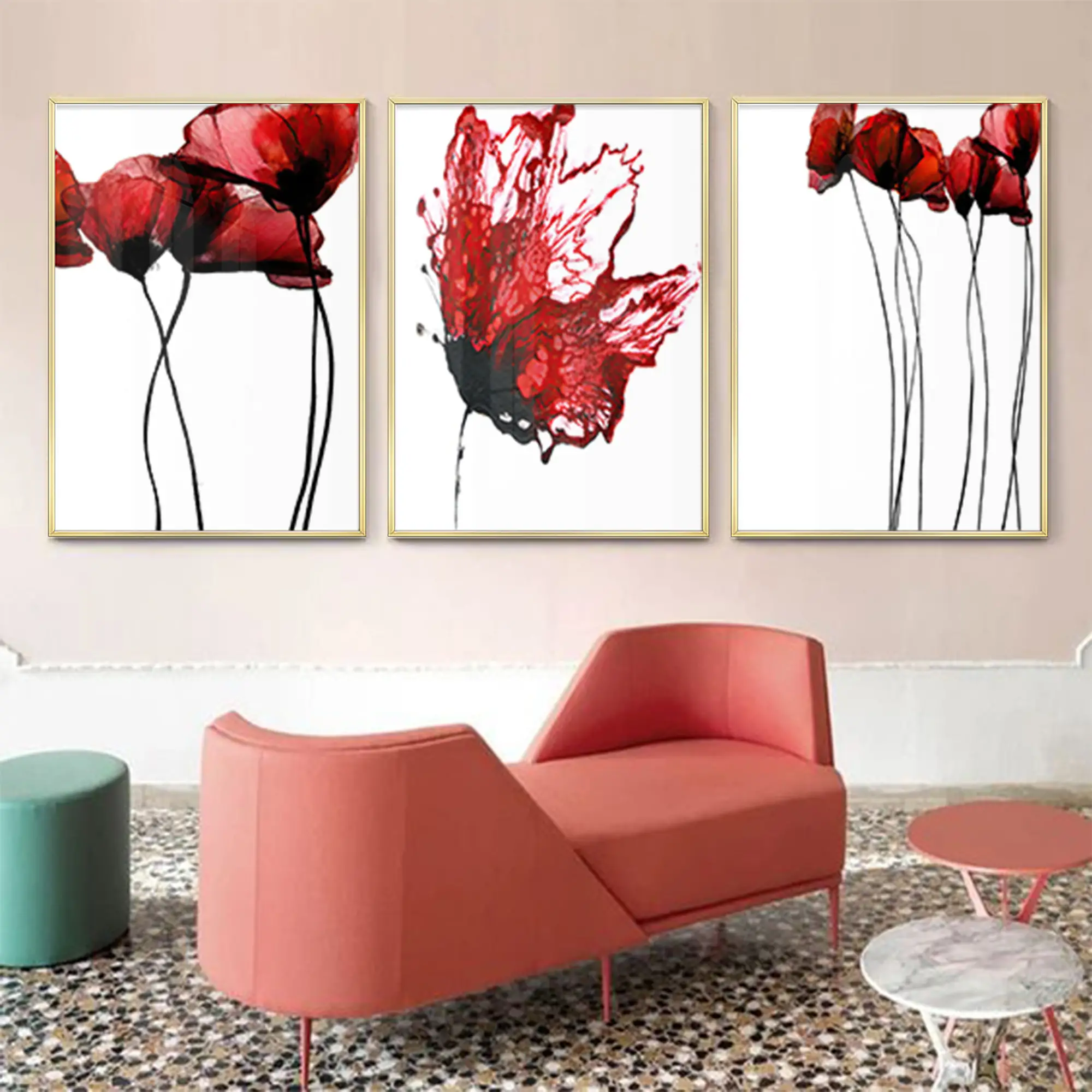 Kırmızı Çiçek Desenli Metal Çerçeveli Tablo Seti Altın Hakkında