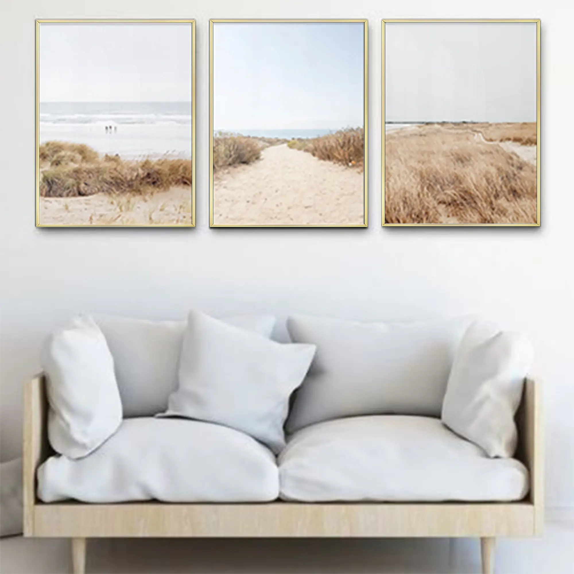 Kumsal Desenli Manzara Detaylı Metal Çerçeveli Tablo Seti Altın Hakkında
