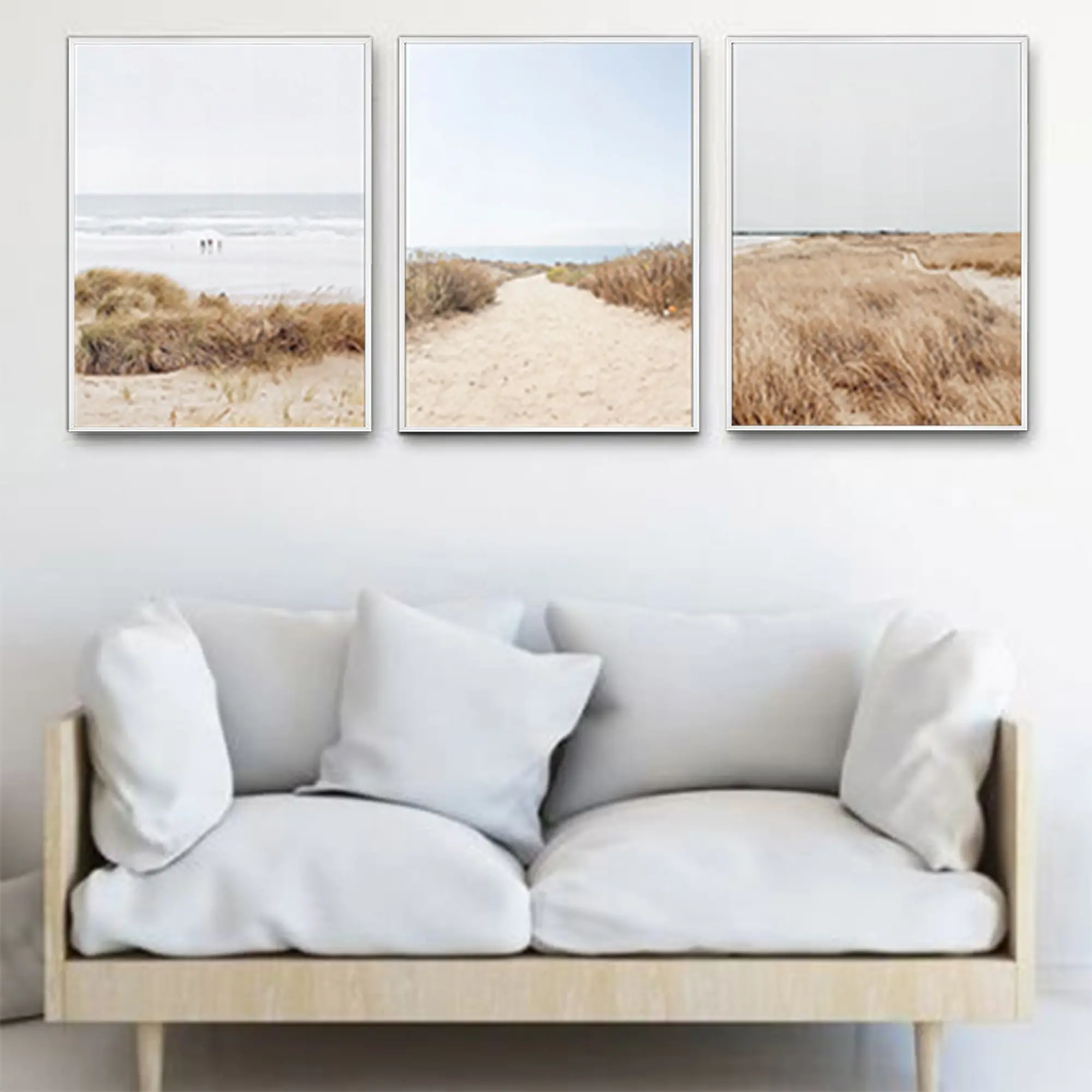 Kumsal Desenli Manzara Detaylı Metal Çerçeveli Tablo Seti Beyaz Hakkında