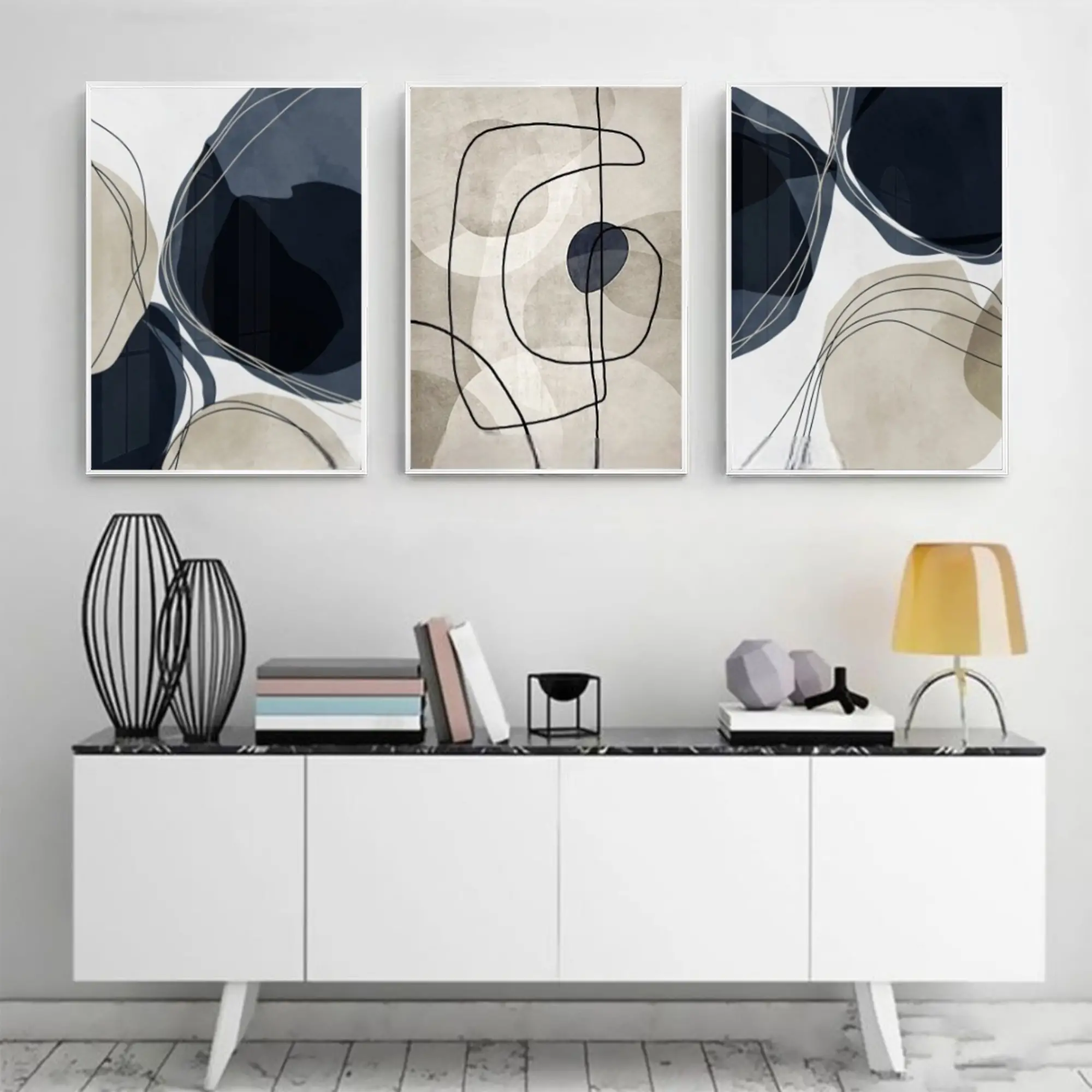 Lacivert Geometrik Desenli Metal Çerçeveli Tablo Seti Beyaz Hakkında