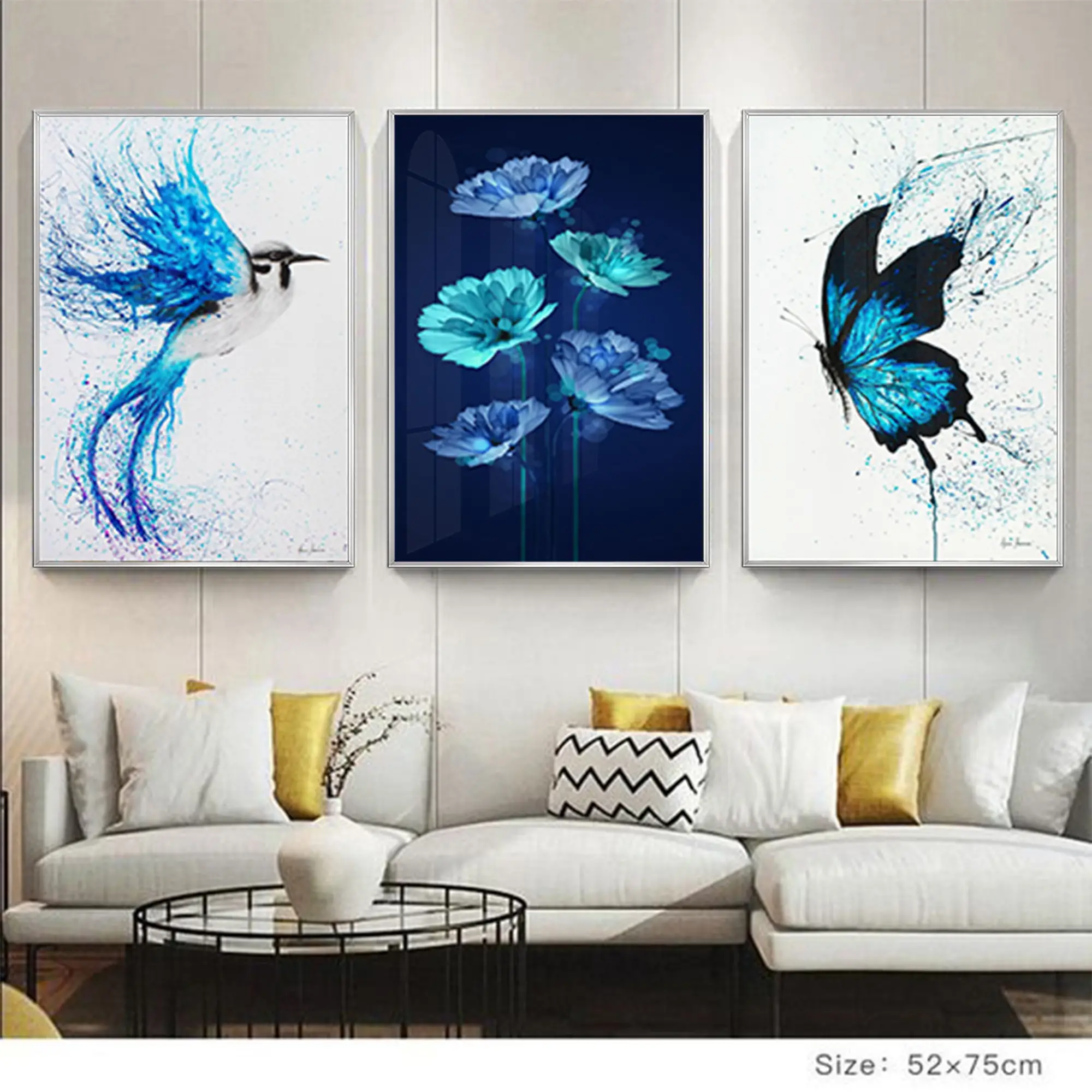 Lacivert Kuşlar Tasarım Metal Çerçeveli Tablo Seti Gümüş Hakkında