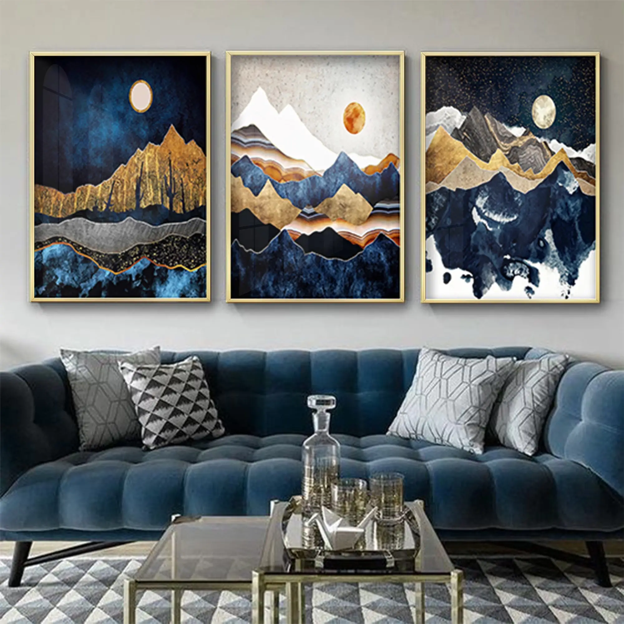 Lacivert Manzara Desenli Metal Çerçeveli Tablo Seti Altın Hakkında